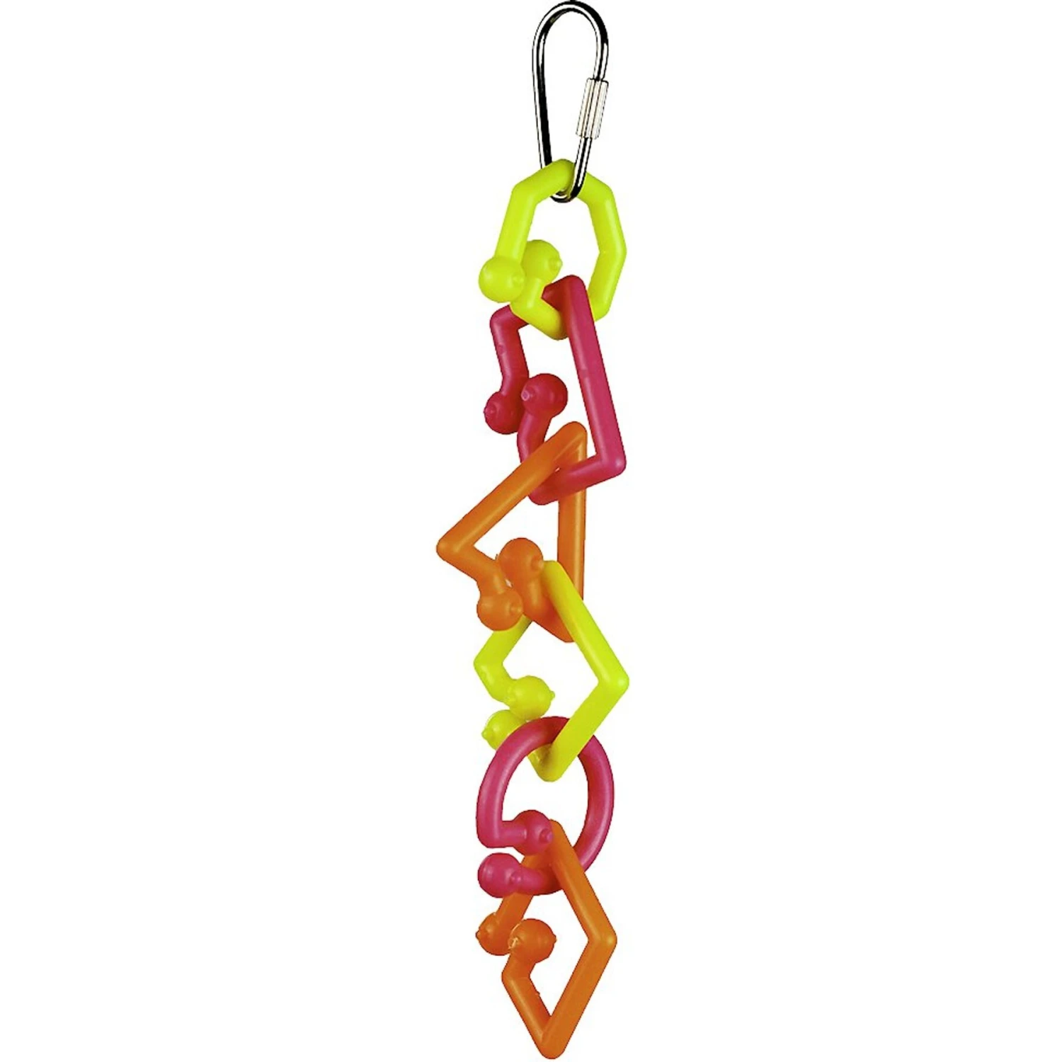 - Colorful geometric charms provide entertainment to your feathered friends.