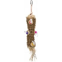 - Natural fibers create feet and beak exercise opportunities, and brightly colored wood shapes hold your bird’s interest.