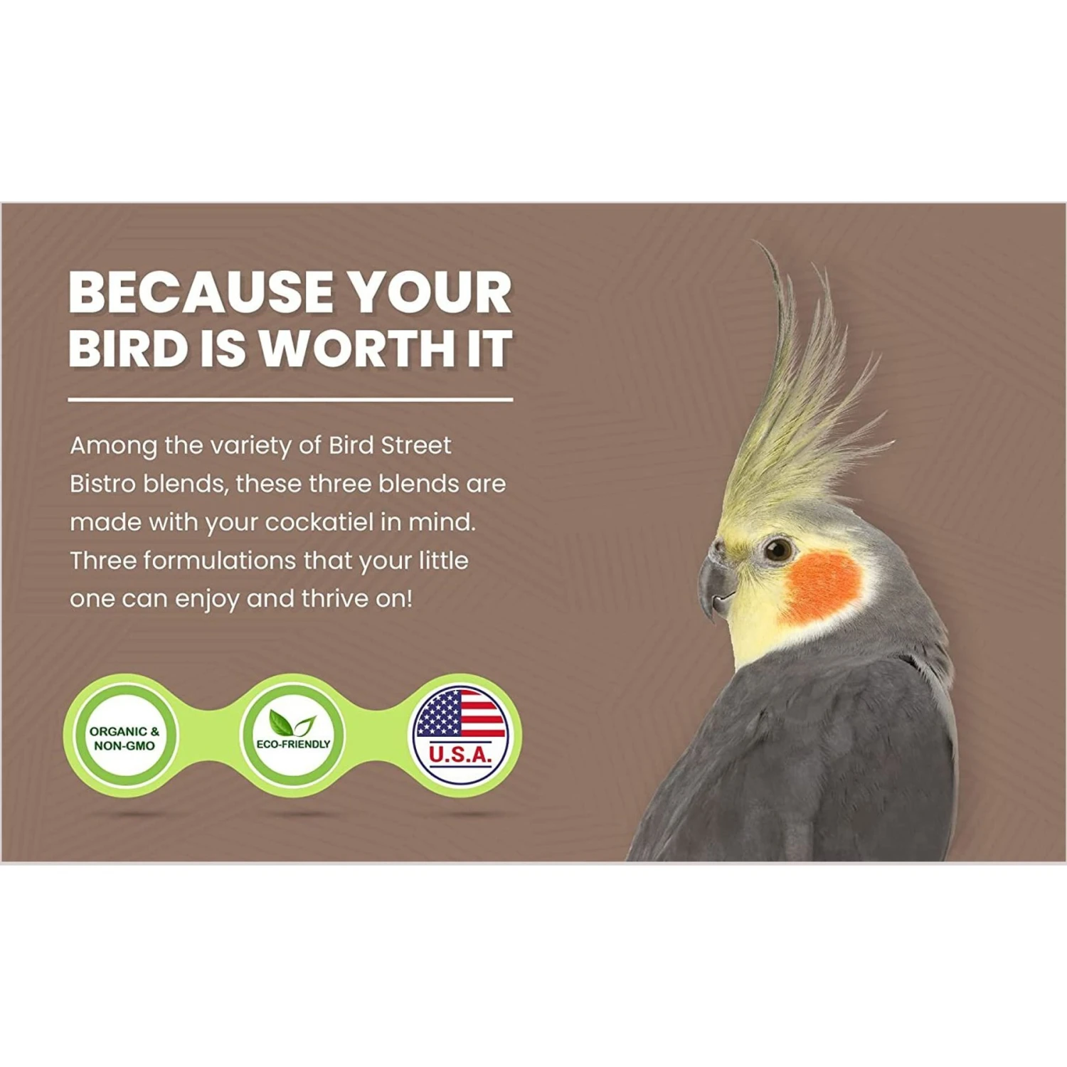 - Specifically designed for Cockatiels and Parrots.