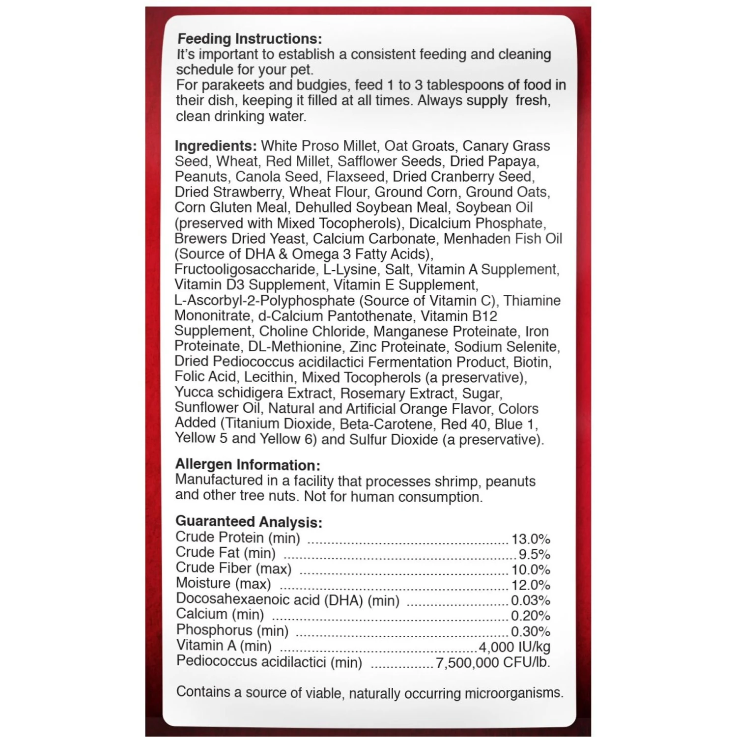 - Fortified with vitamins and minerals to enhance your parakeet’s well-being.