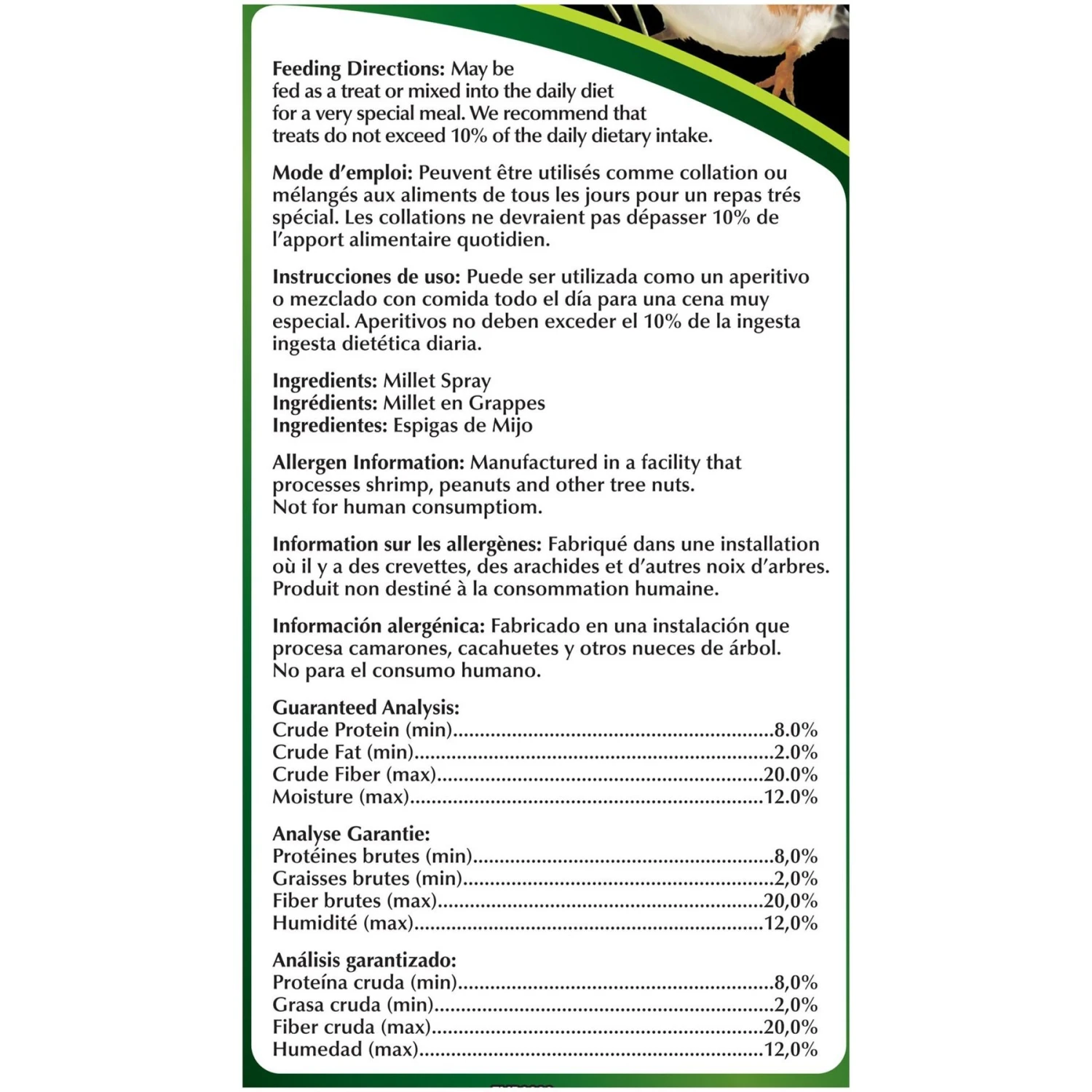 - Every purchase comes with a bag of 12 sun-cured millet spray.