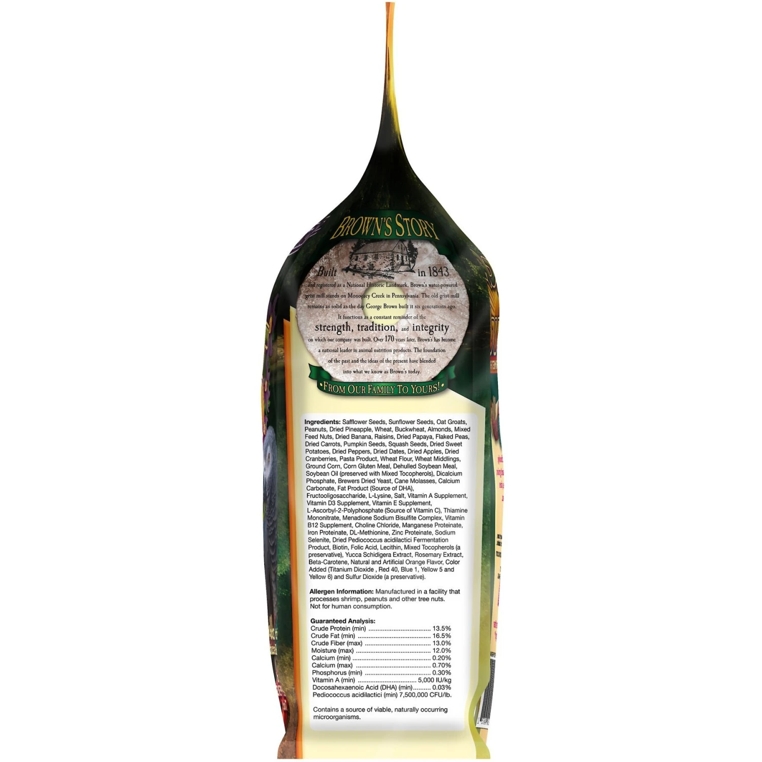 - Balanced bird food offers variety with real fruits, nuts, seeds and veggies.