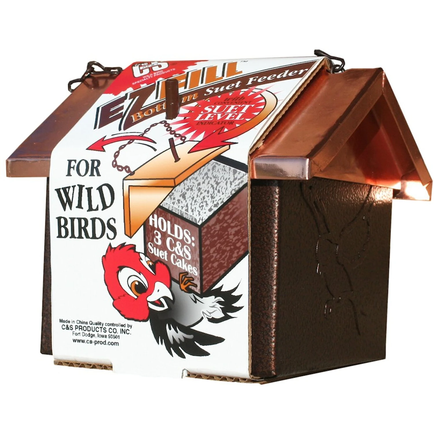 - Specifically constructed to hold 3 suet cakes.