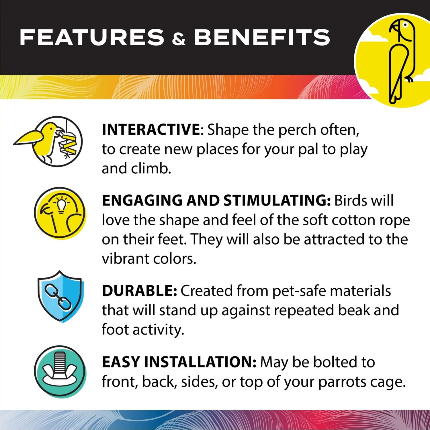 - Your feathered friend is sure to be fascinated with the distinctive shapes and vibrant colors.