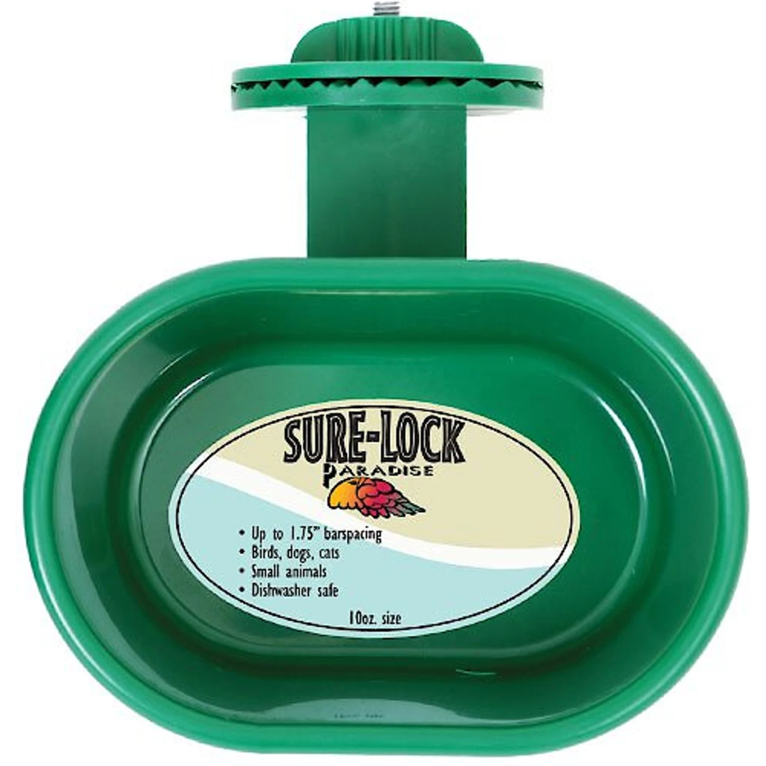 - Locks securely to a mounting bracket to help minimize the mess—compatible with any cage.