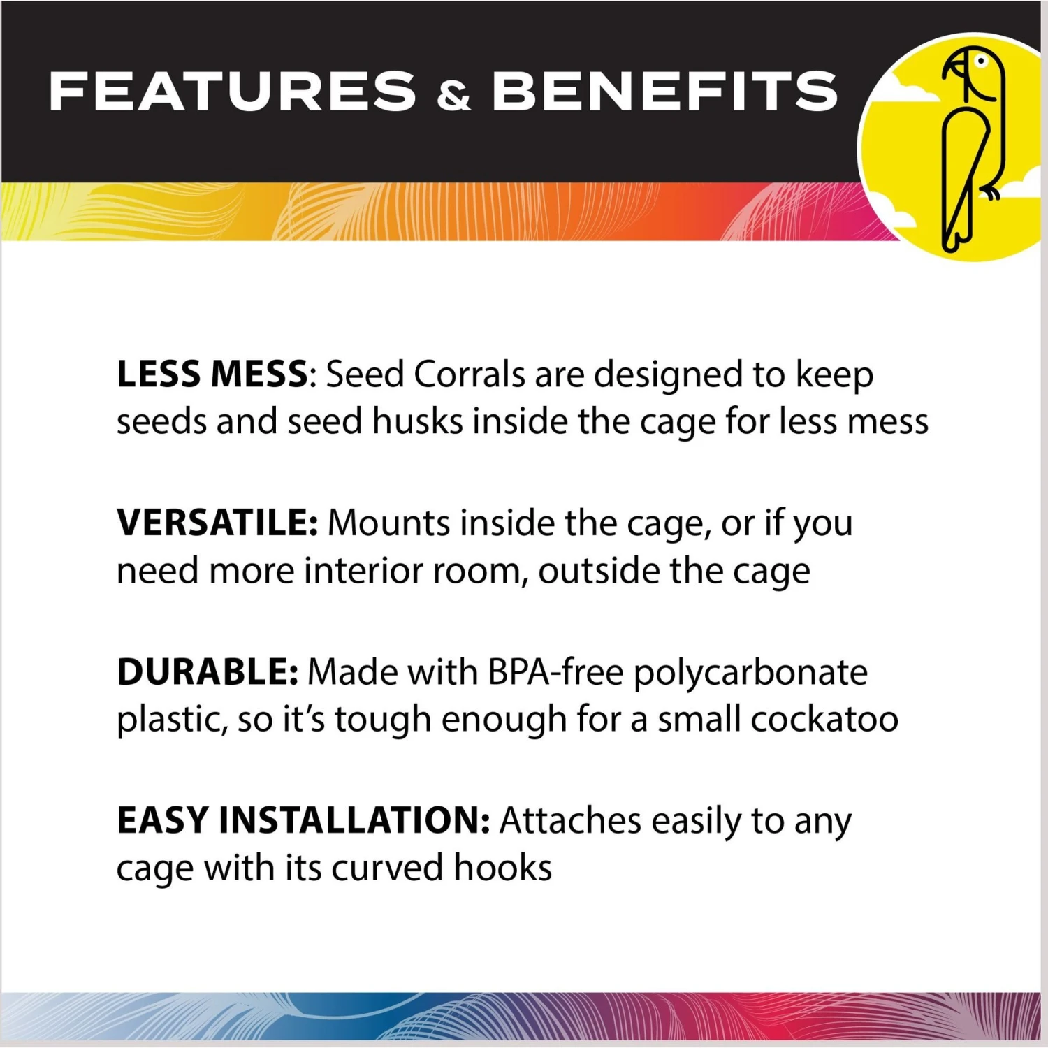 - Helps keep uneaten seeds and seed husks inside your bird’s cage for less mess.
