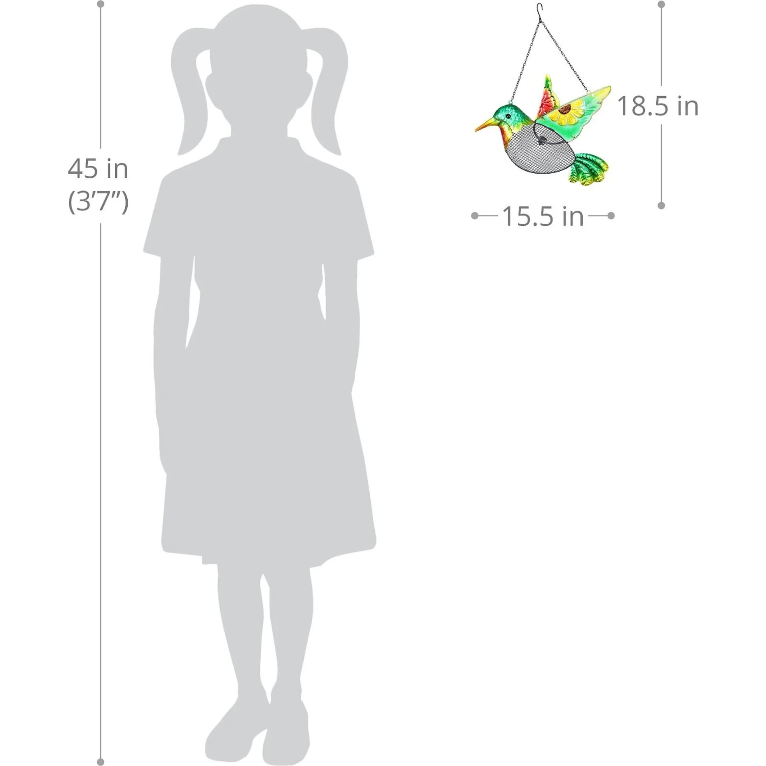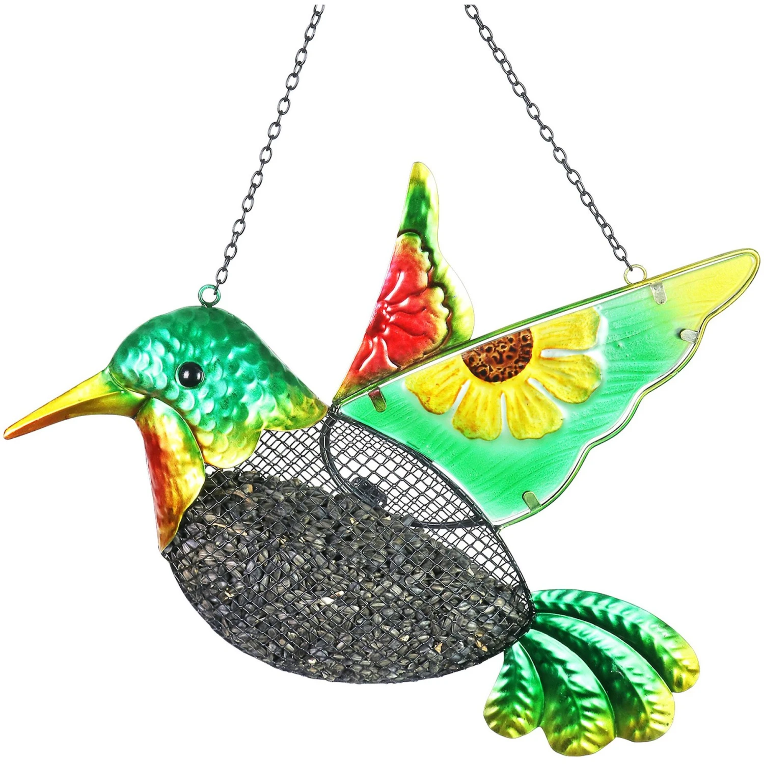 Turn your outdoor space into a welcoming spot your feathered friends will flock to with the Exhart Hummingbird Bird Feeder with Metal Mesh Seed Basket. This beautiful, hanging, hummingbird-shaped bird feeder is crafted from durable metal, colorfully hand-painted with metallic paint, and UV treated to resist fading. Plus it’s easy to install, the chain easily attaches to your patio, awning, tree branch or shepherd’s hook. The convenient metal mesh basket holds visible birdseed – inviting birds to come enjoy a meal in your garden!