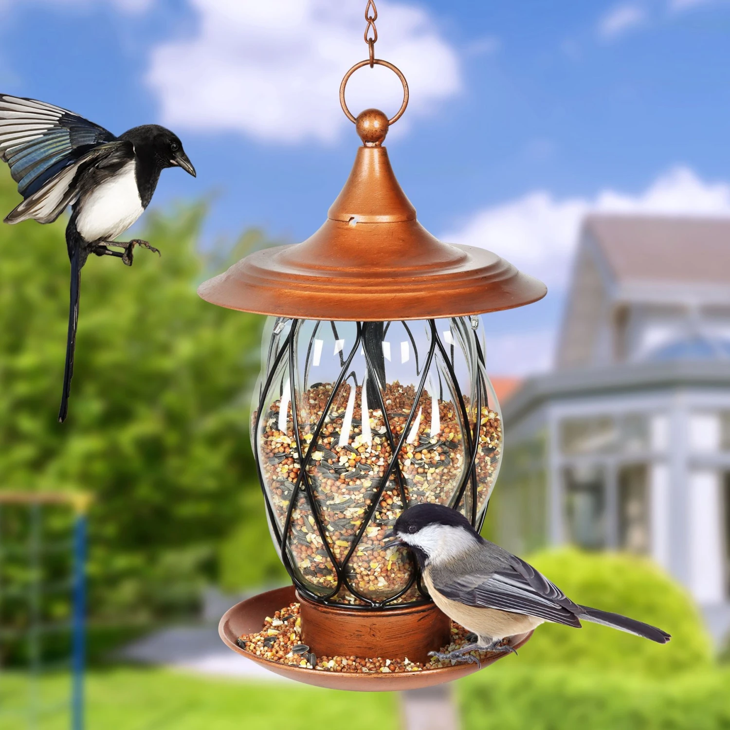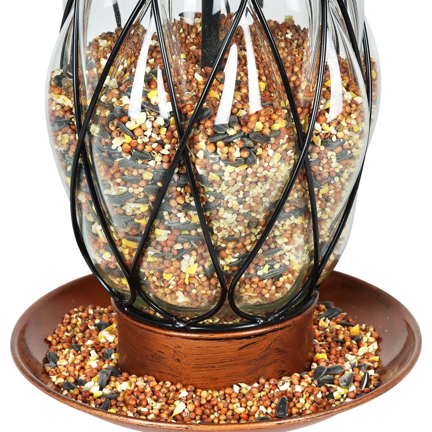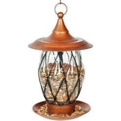 - Elegant caged glass feeder makes it easy to notice when it’s time for a refill.