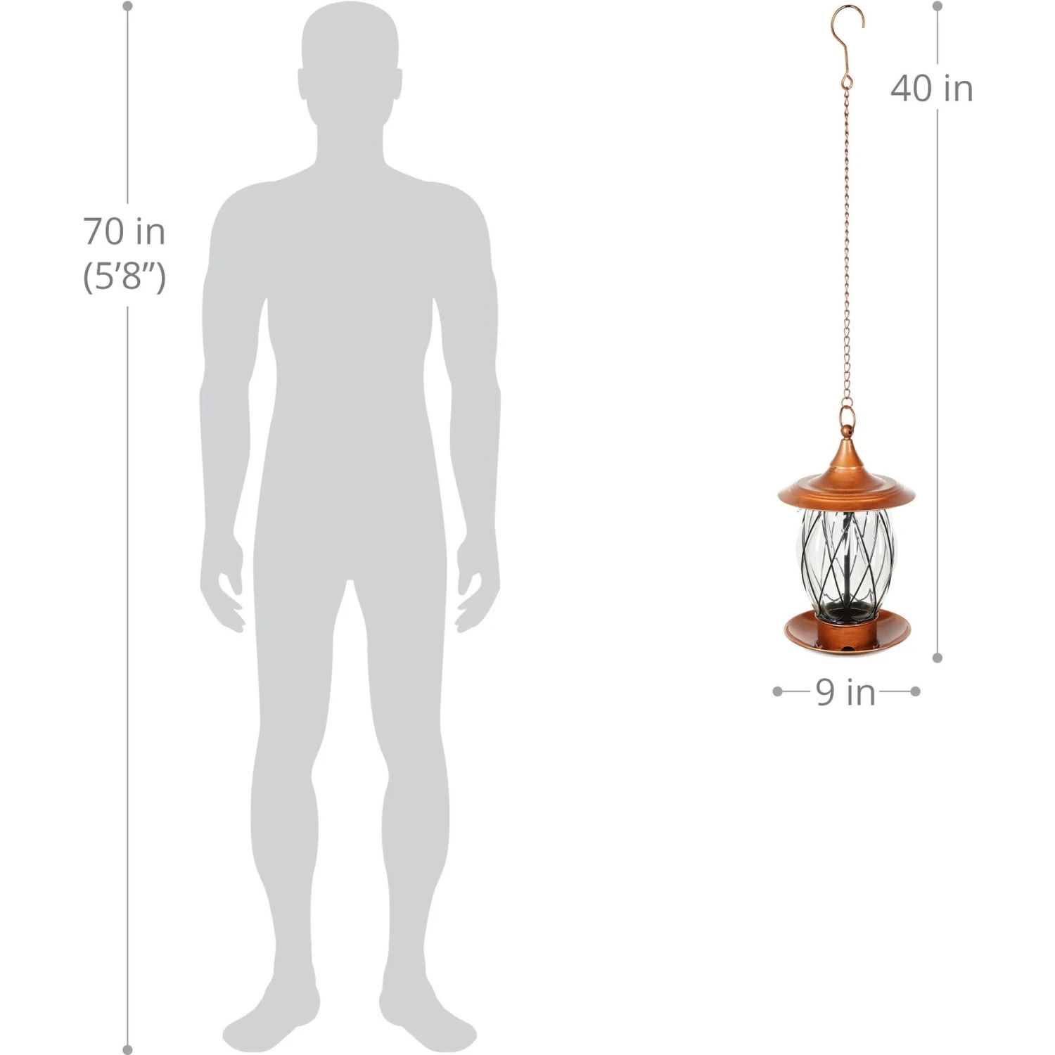 - Solar-powered LED light automatically glows at dusk, keeping your birdie bistro open for late-night diners!