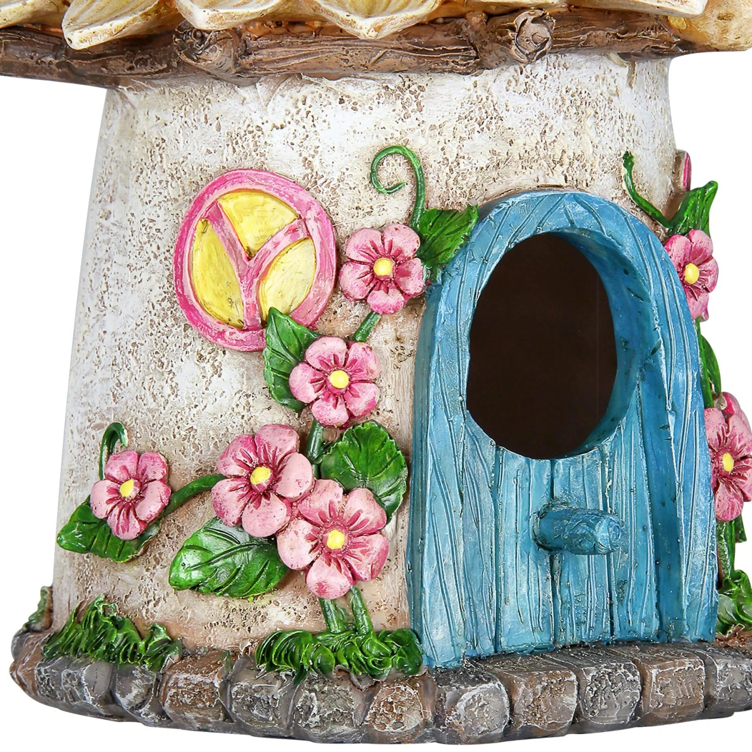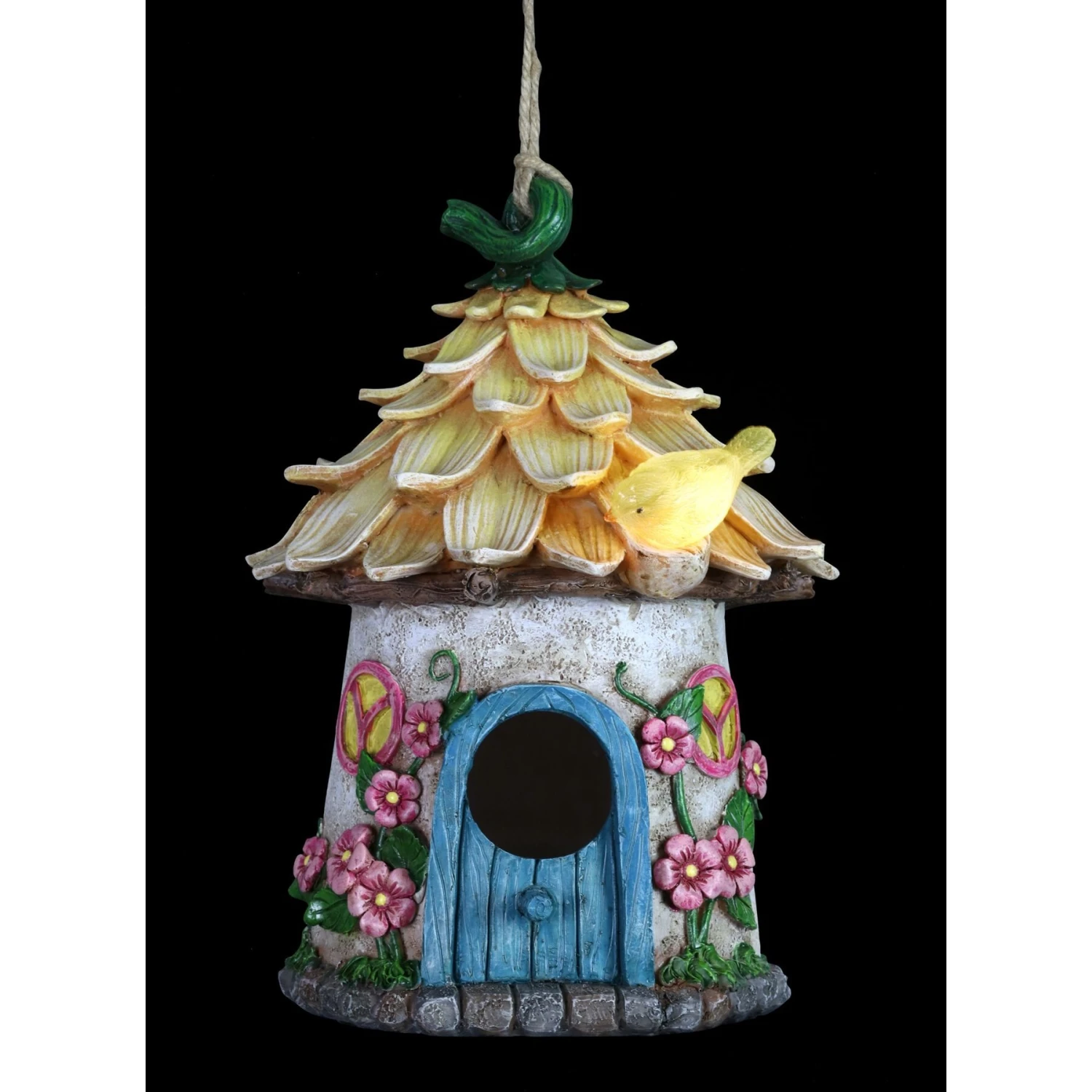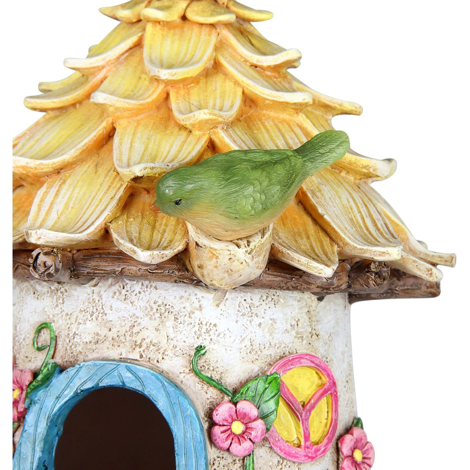 - Fun, fairy-style birdhouse features beautiful, hand-painted details.