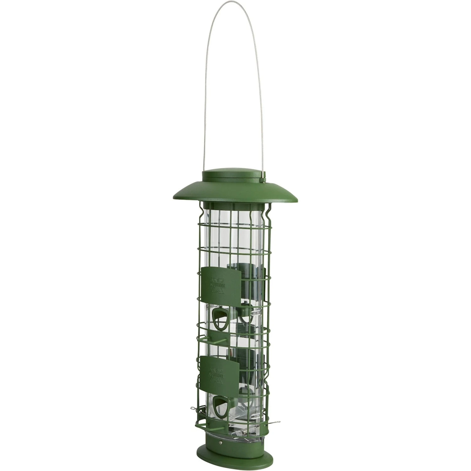 - Squirrel defense feeder features four ports that have their own perch so that all the birds can get a taste of the good stuff.