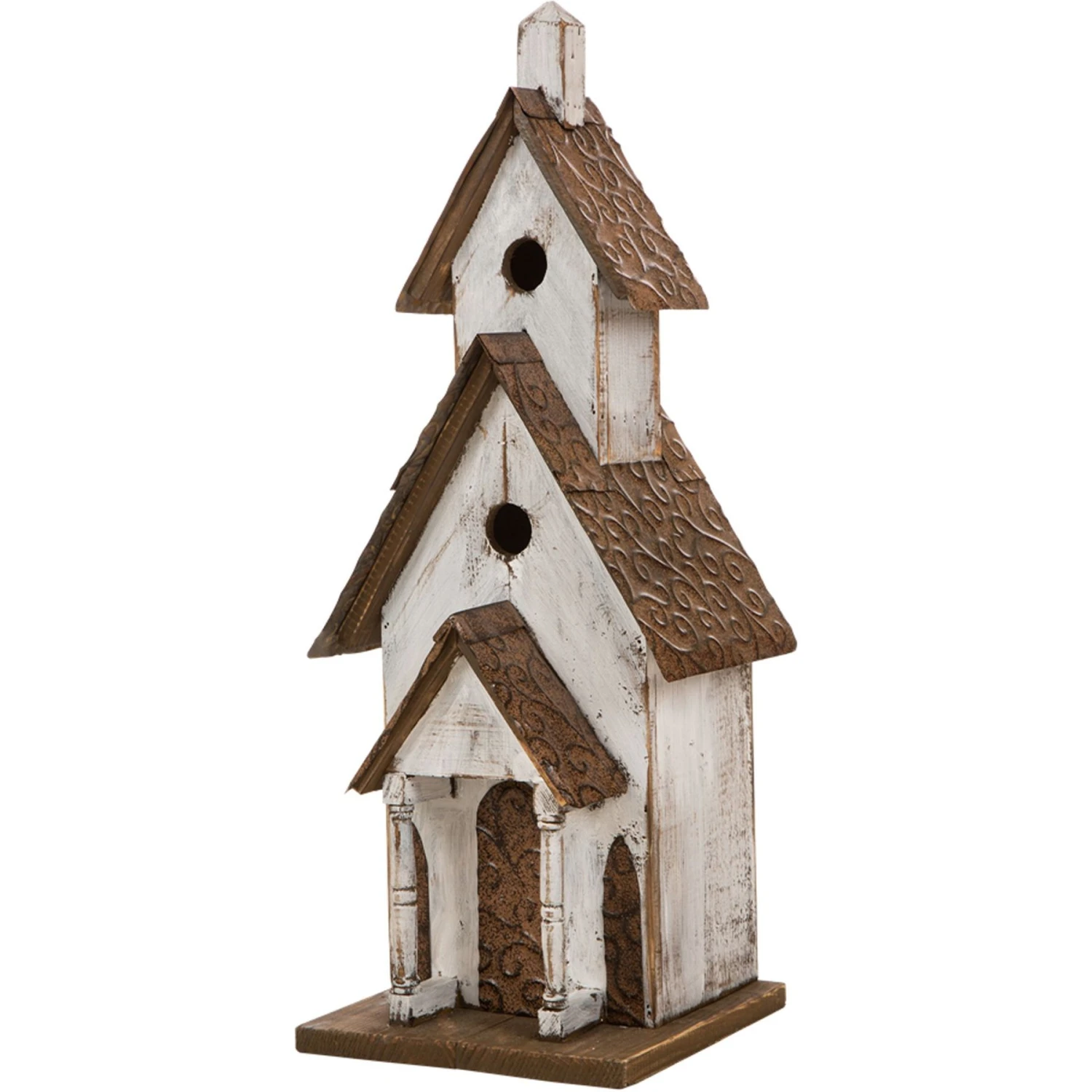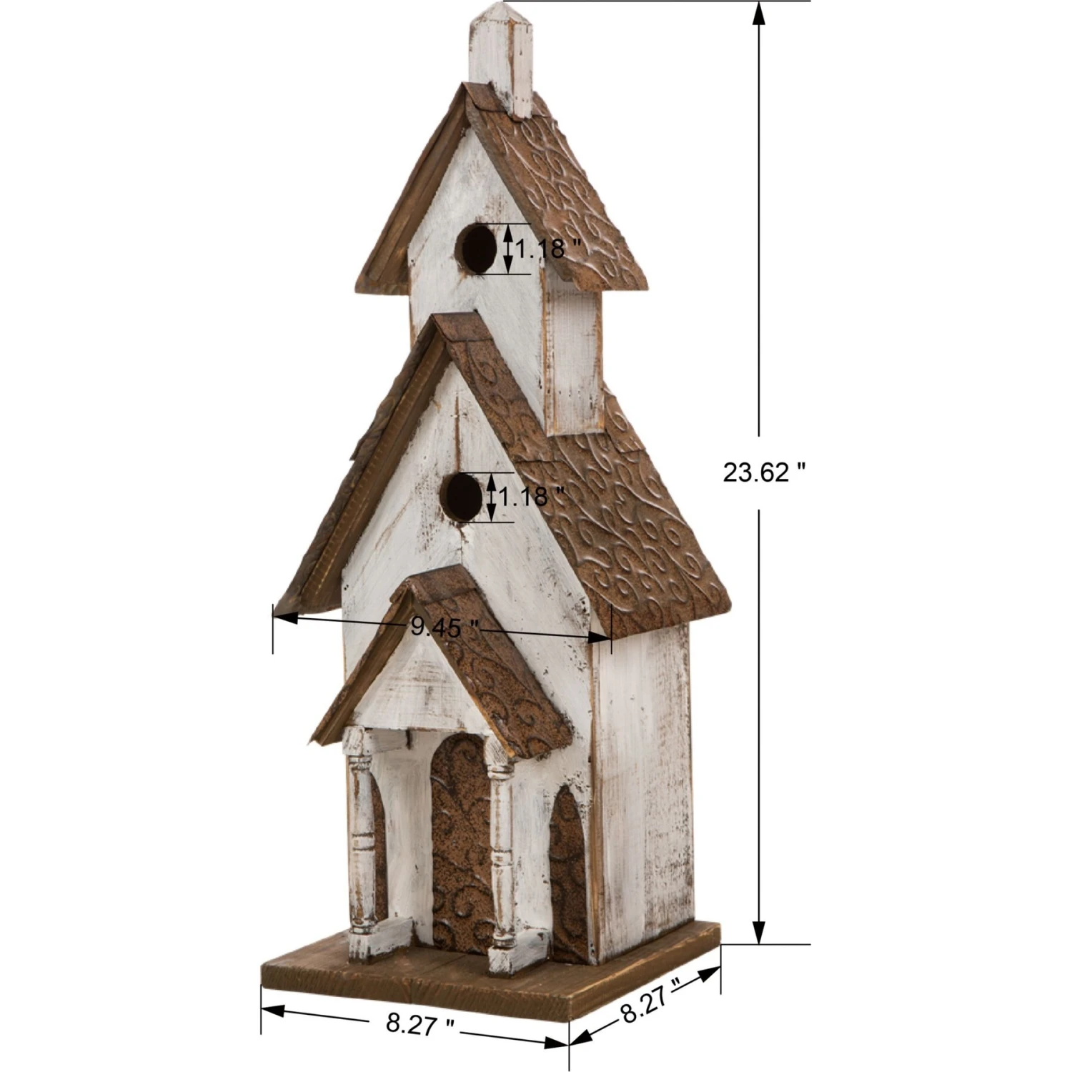 - Charming birdhouse with a rustic, lived-in and loved look that will delight you and your birdie neighbors.