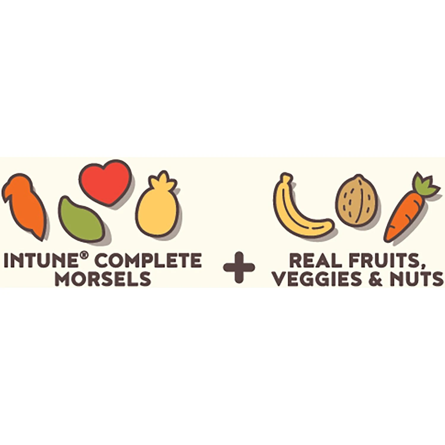 - A balanced food complete with an all-natural blend of fruits, vegetables and extruded pellets.
