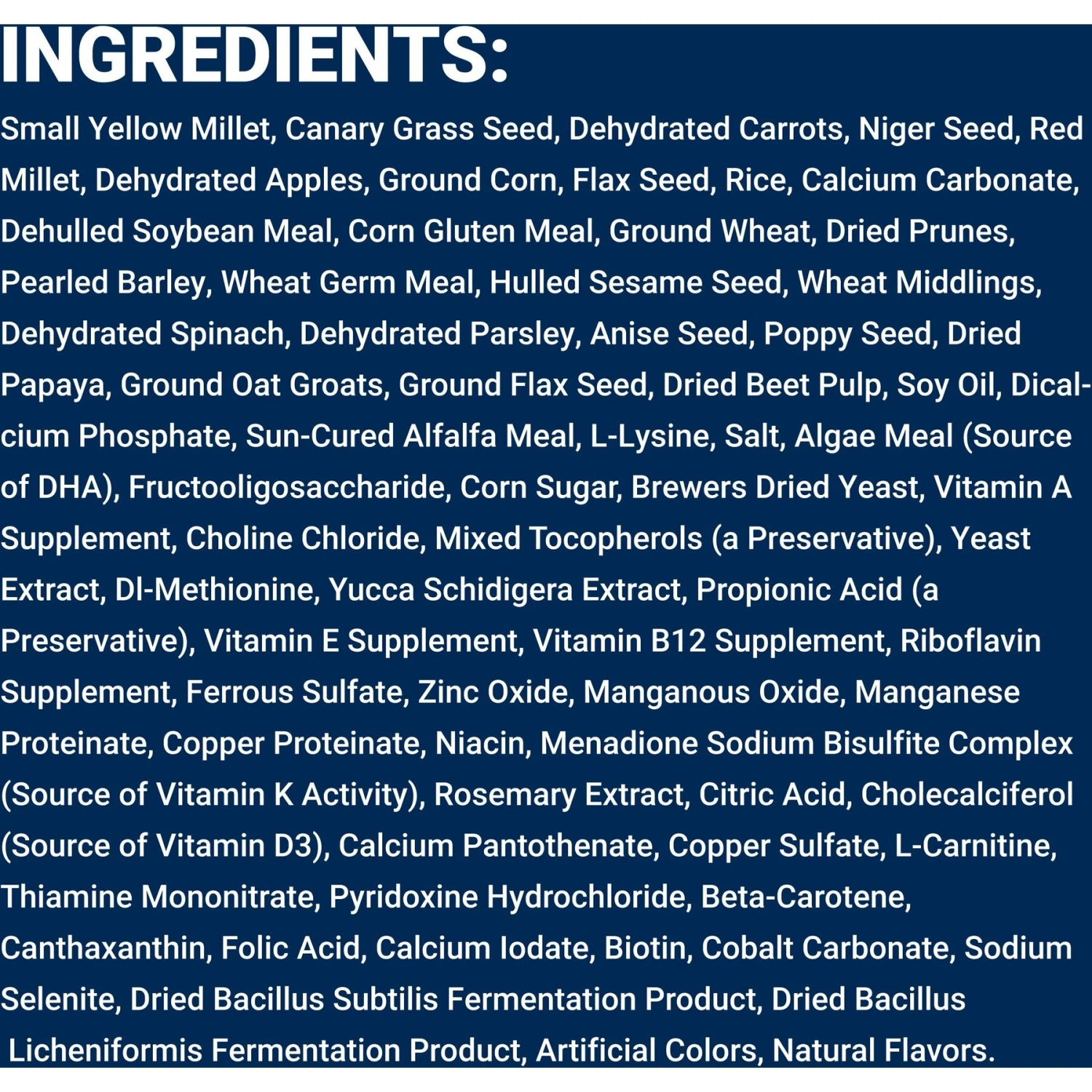 - Formulated for Parakeets