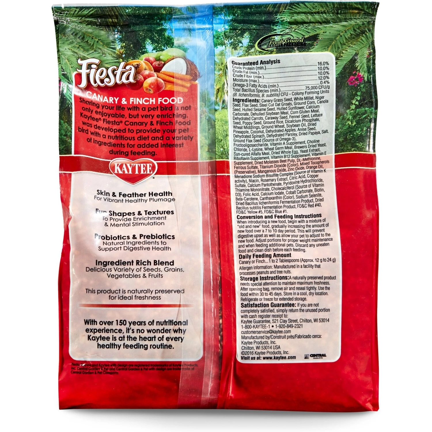 - Kaytee Fiesta Variety is made with real fruits and vegetables like carrots, coconuts and apples