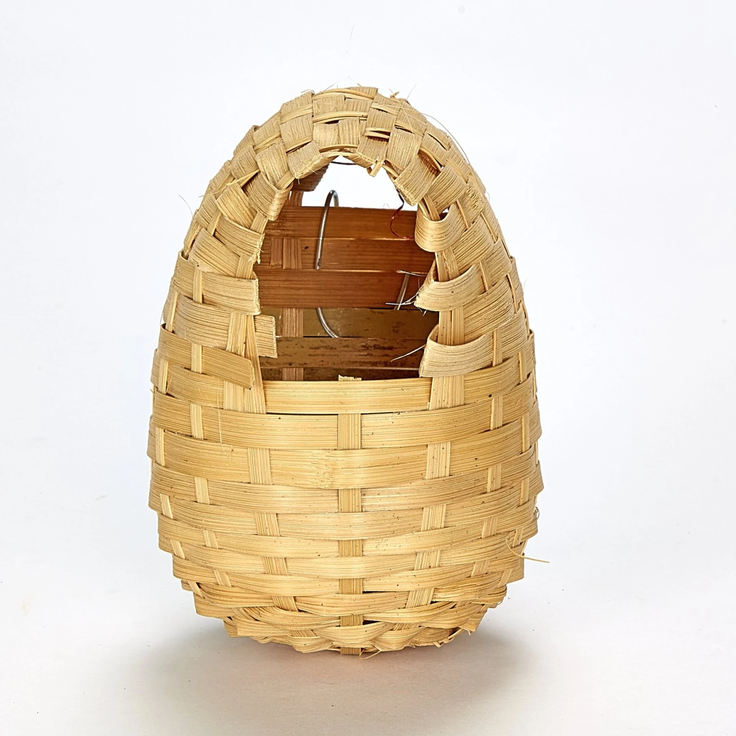 - Natural bamboo material was hand-woven around a sturdy wire frame.