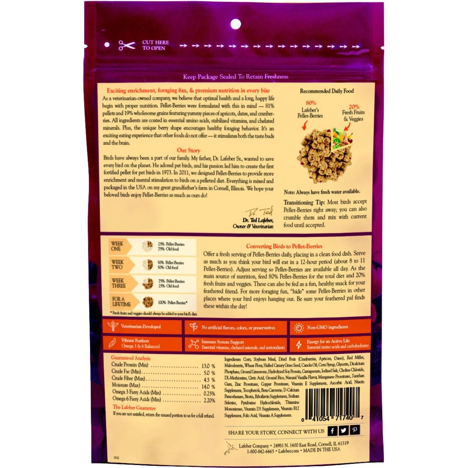 - Made and hand-packed in the USA on the Lafeber farm using sulfite-free vegetables and fruits; naturally flavored and preserved.