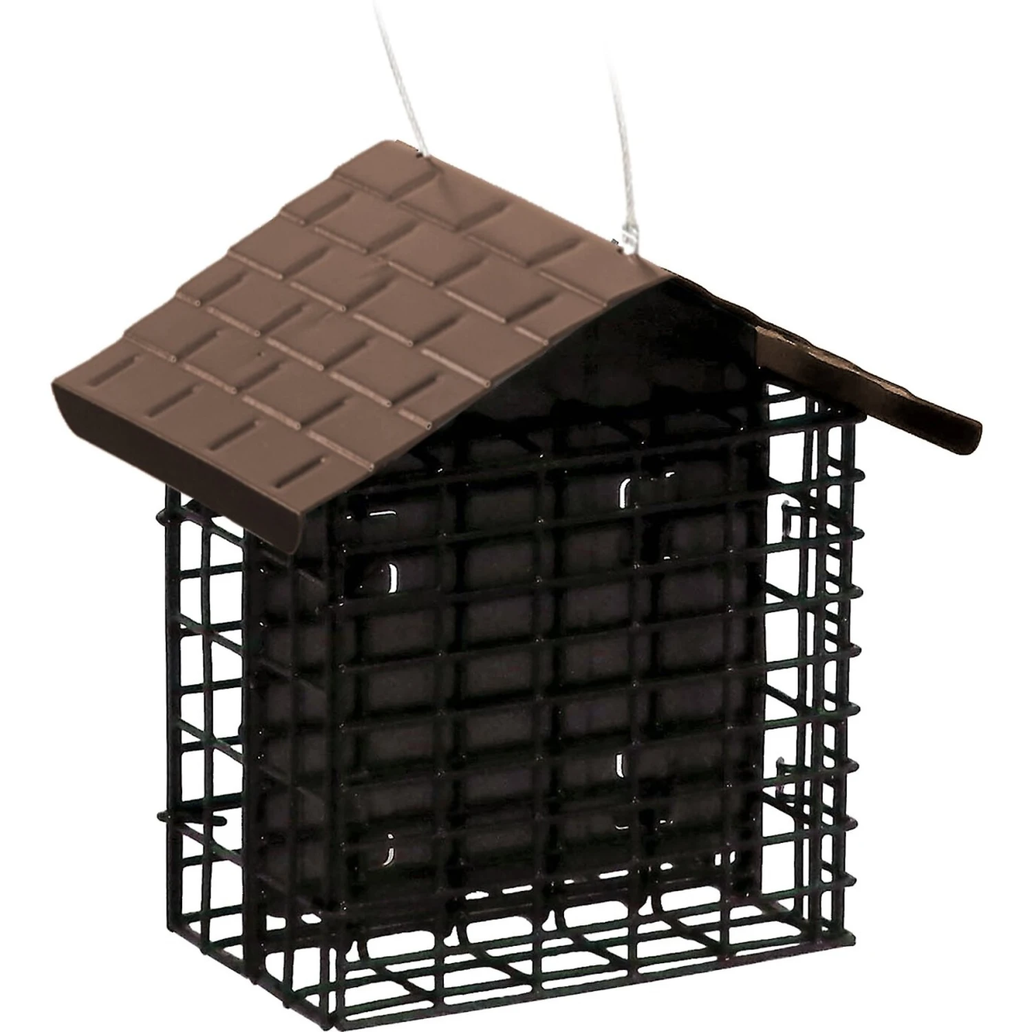 - This feeder features a shingle-patterned roof design that not only looks great, but also helps protect the suet from the outdoor elements.