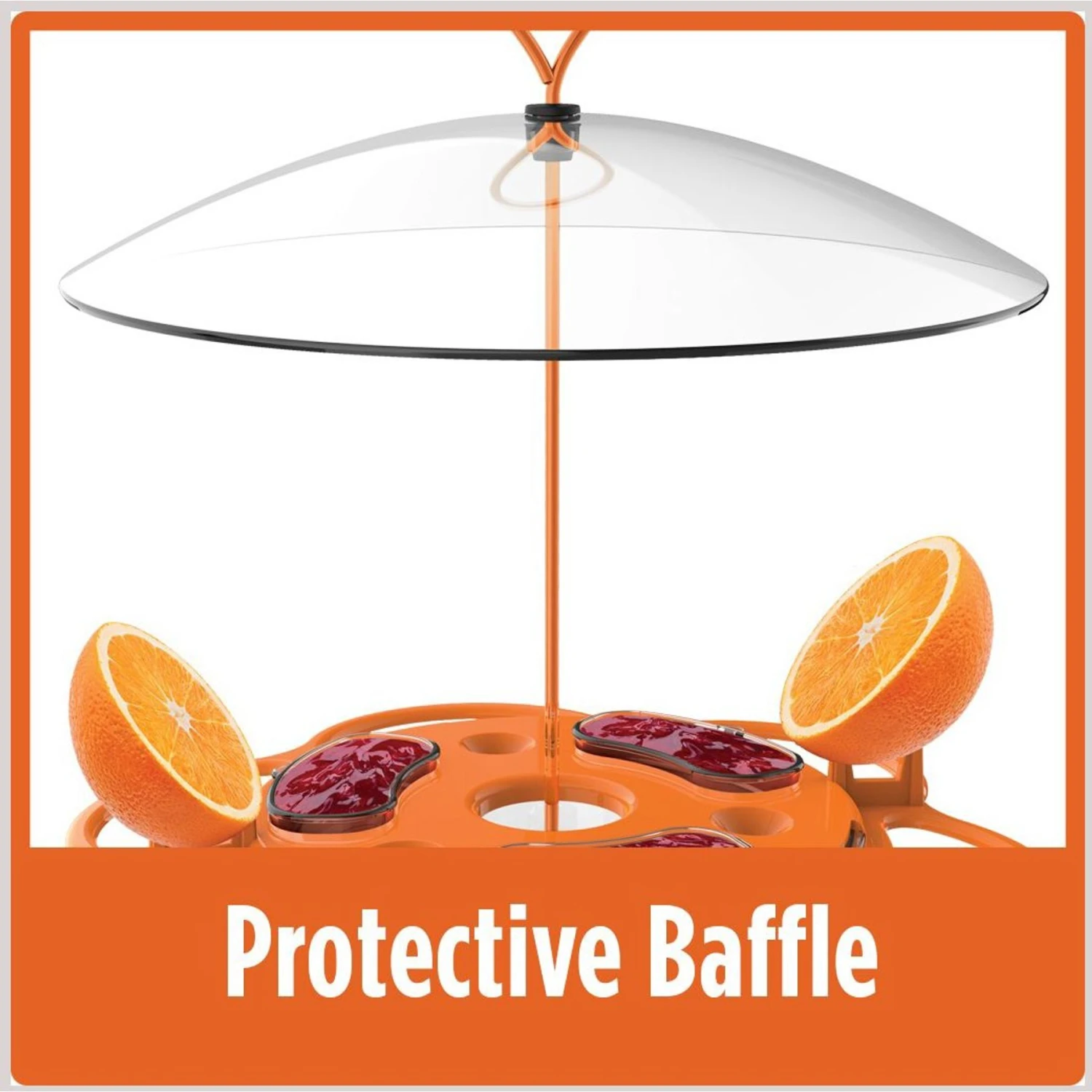 - Protective baffle helps to protect the feeder from rain and debris to keep food fresh.
