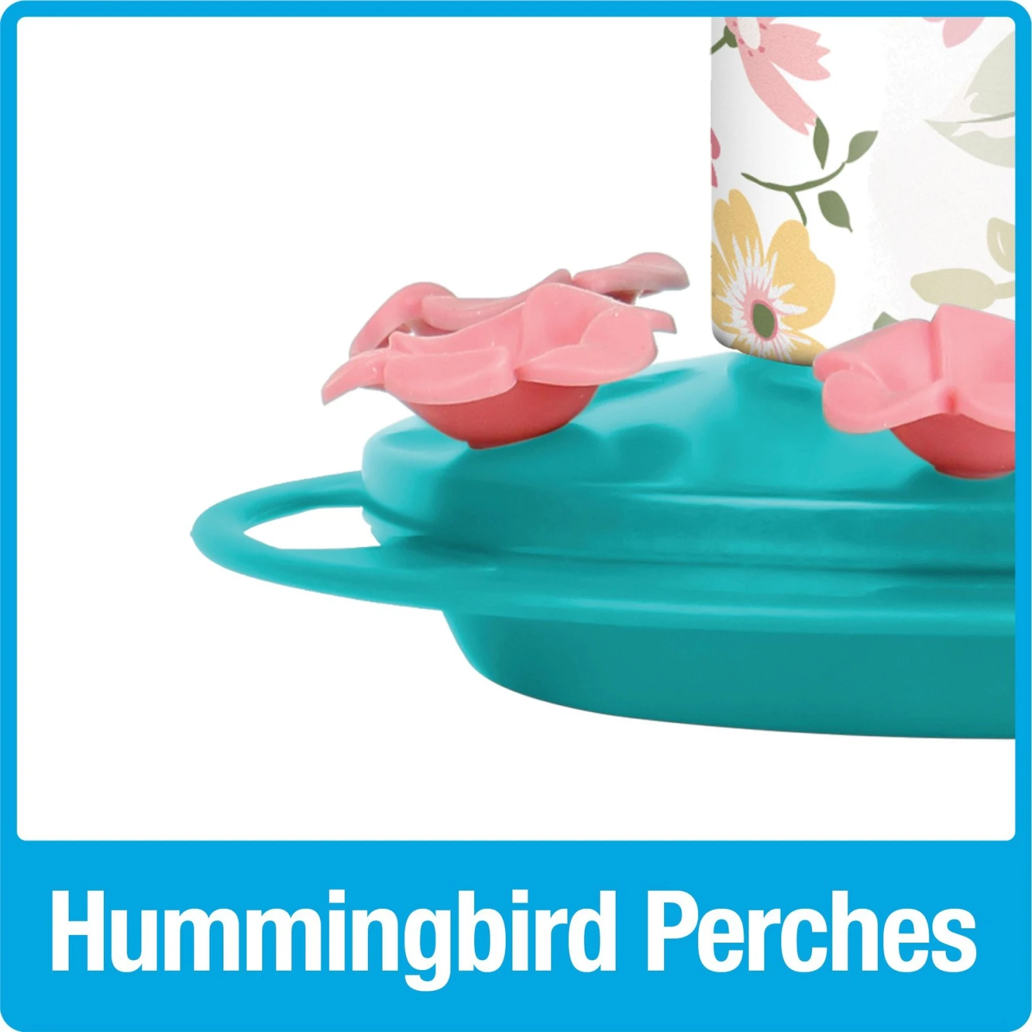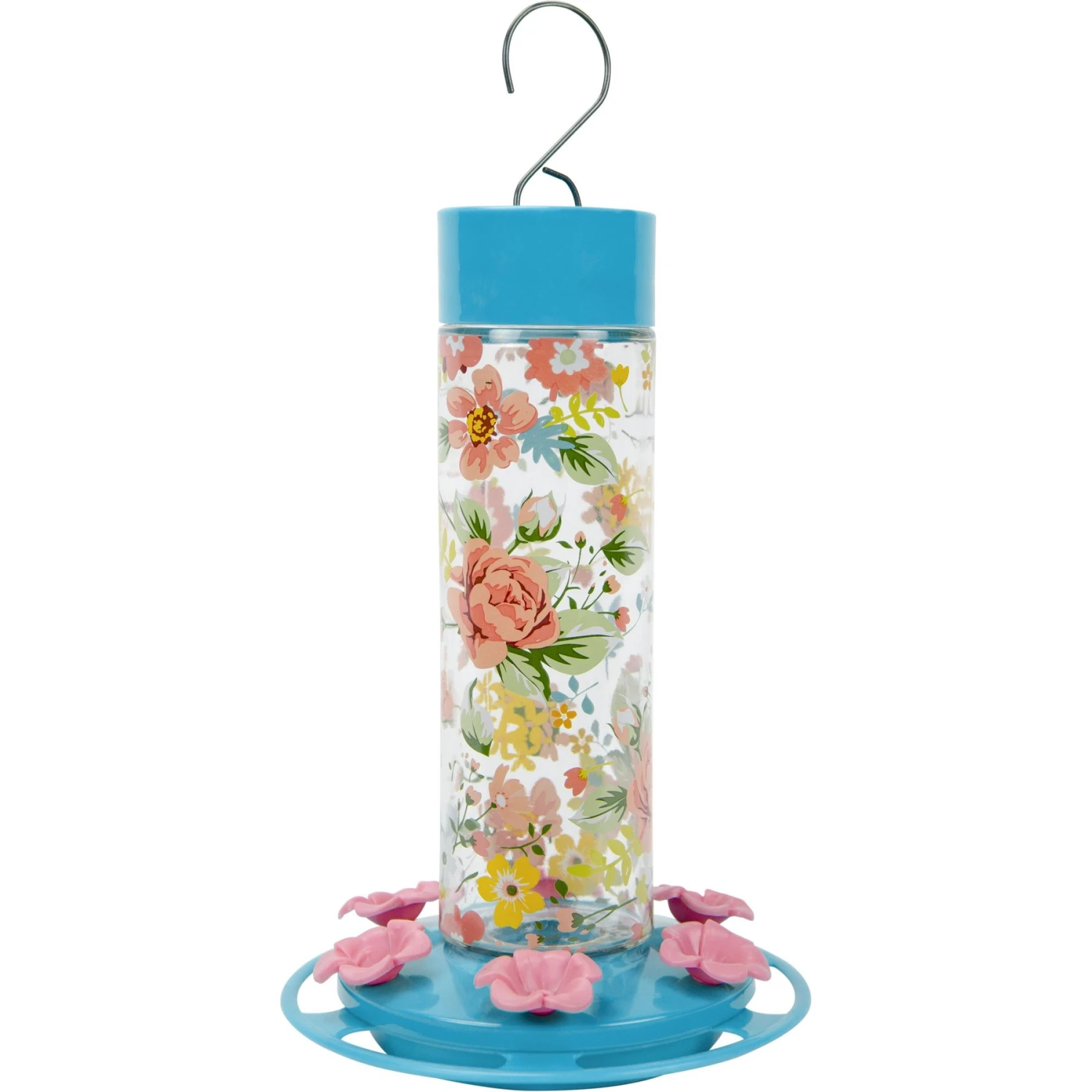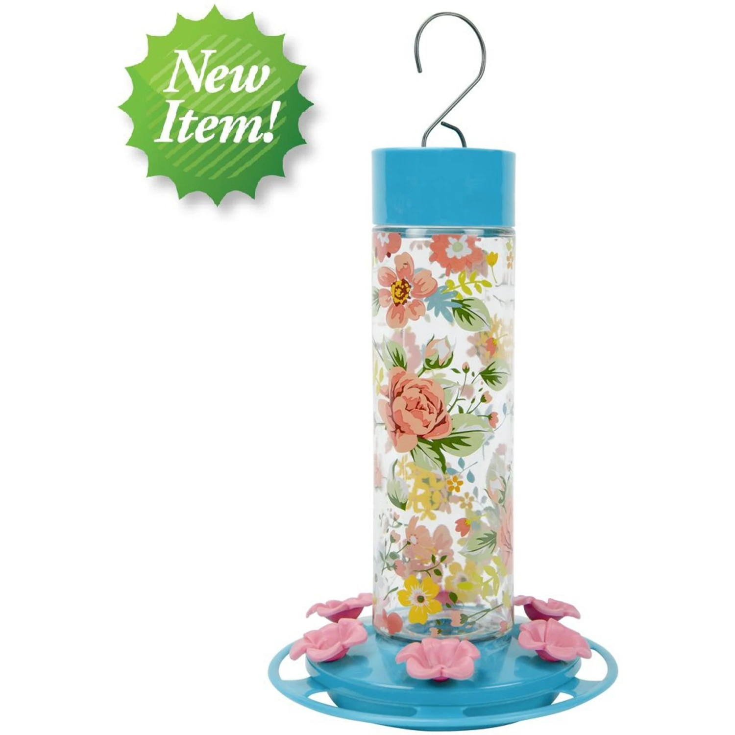- Bring more blooms to your yard with this decorative floral glass hummingbird feeder.