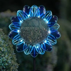 Exhart Solar Sunflower Metal & Glass Bird Seed Feeder Garden Stake