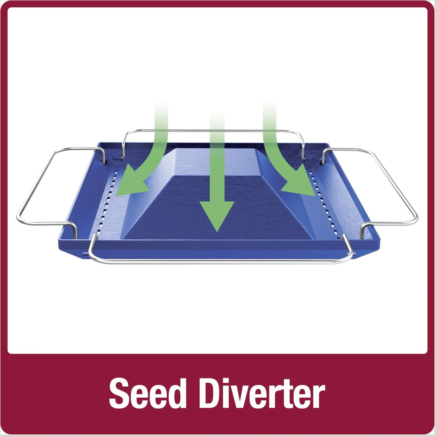 - Seed diverter base directs seed to feeding area, so birds have easy access.