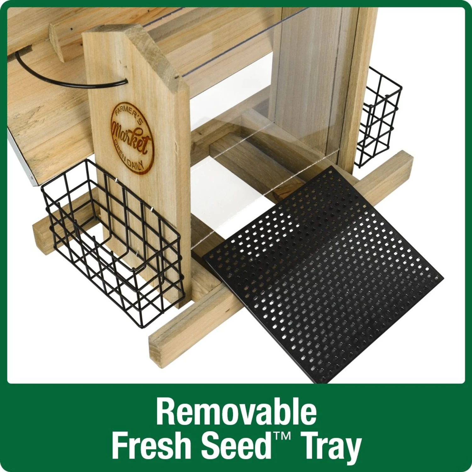 - Removable seed tray keeps seed fresher longer and helps to prevent feeder rot.