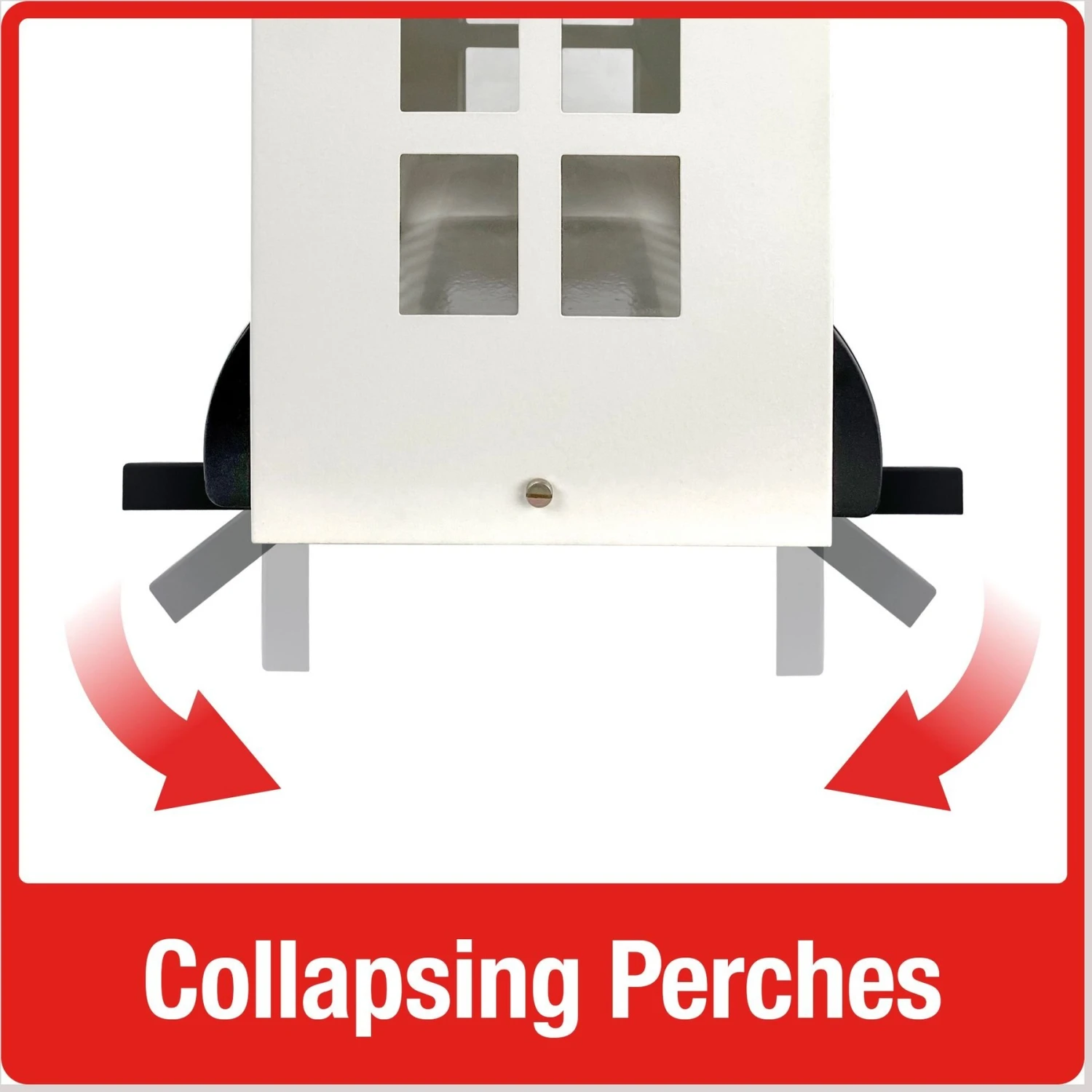 - Squirrel-resistant collapsing perches make it difficult for squirrels to get a foothold on the feeder.