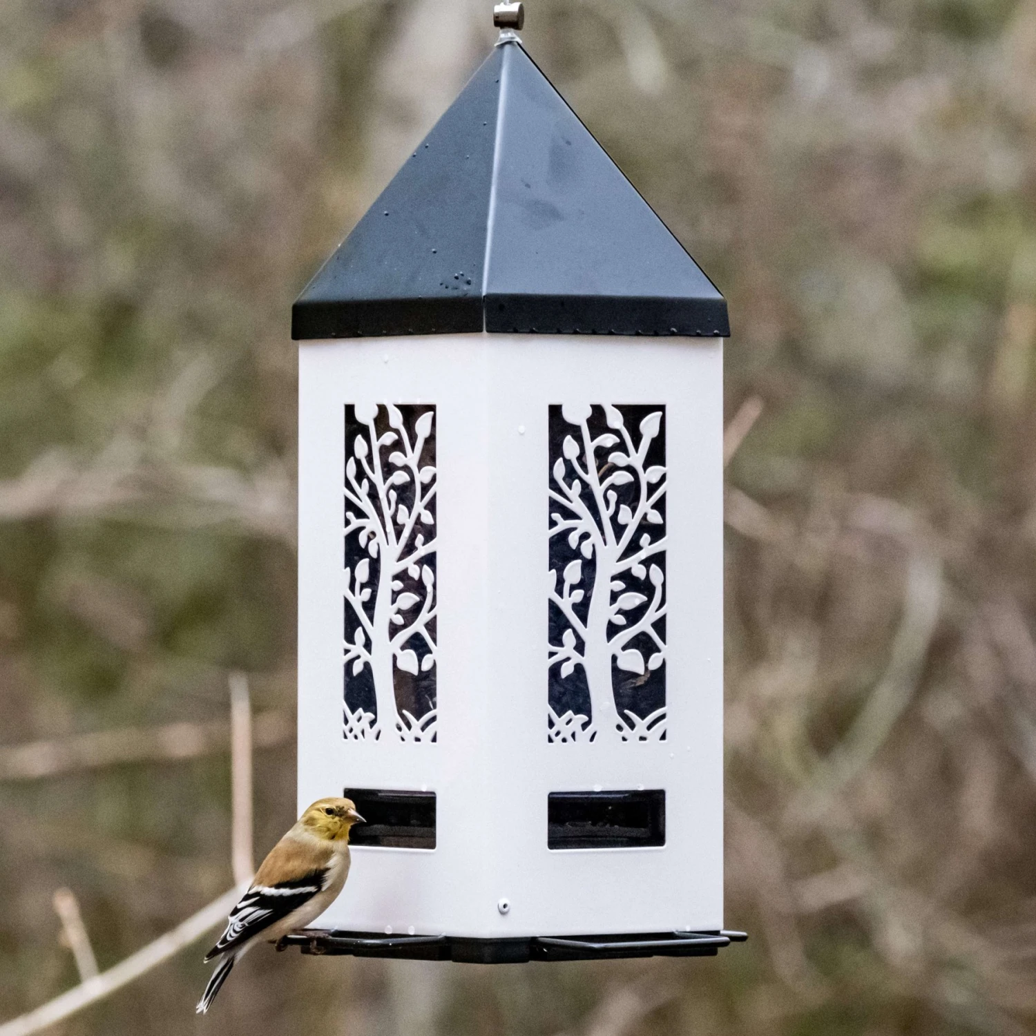 - Squirrel-resistant collapsing perches make it difficult for squirrels to get a foothold on the feeder.