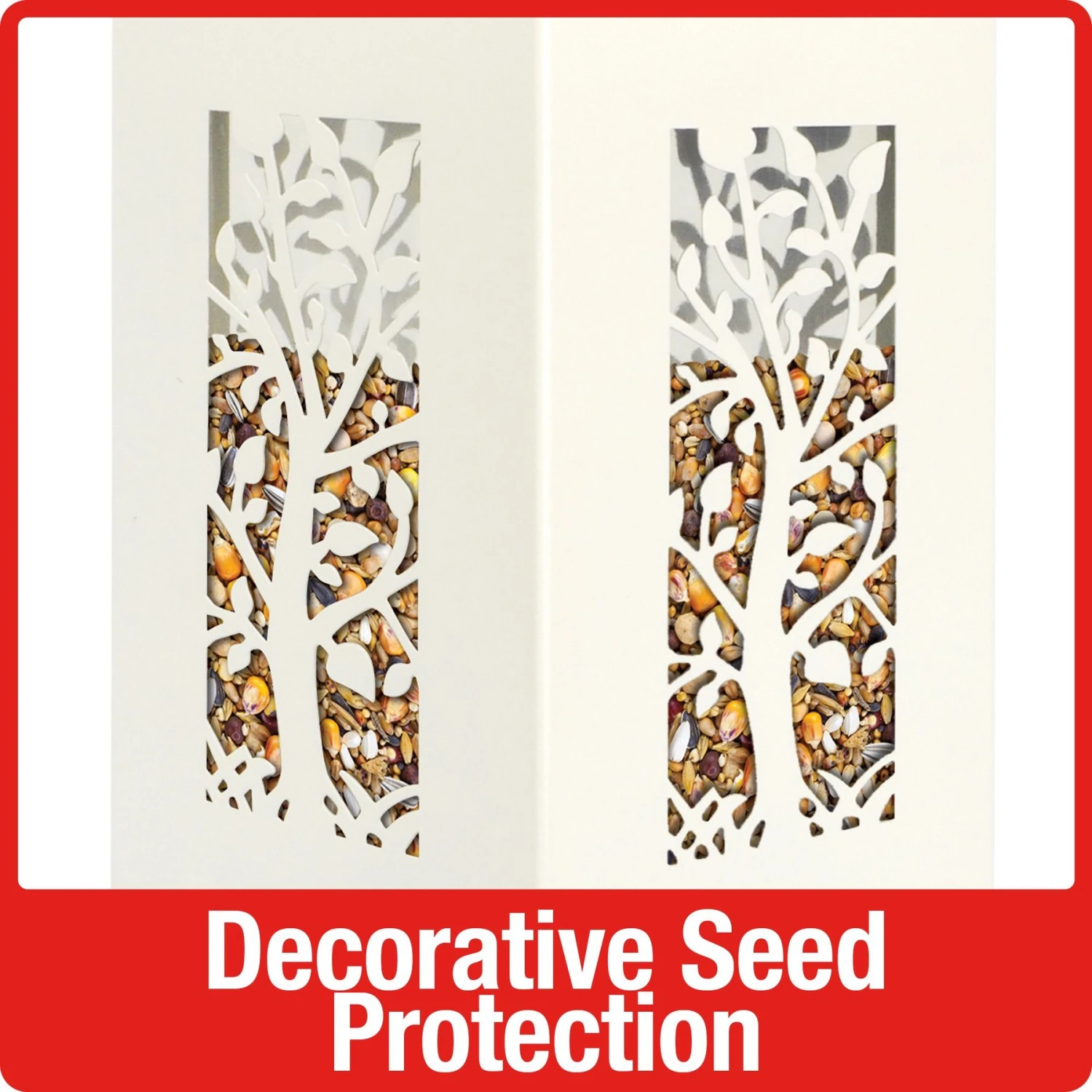- Squirrel-resistant weight-sensitive seed shield keeps squirrels away from the seed.
