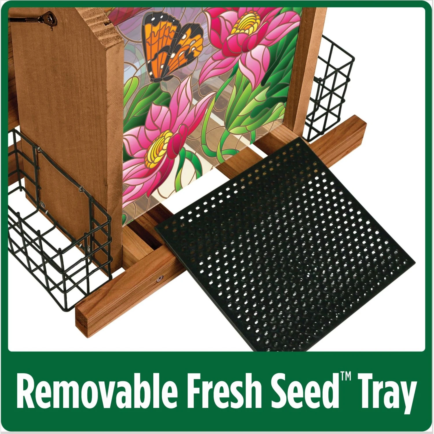 - Removable seed tray keeps seed fresher longer and helps to prevent feeder rot.