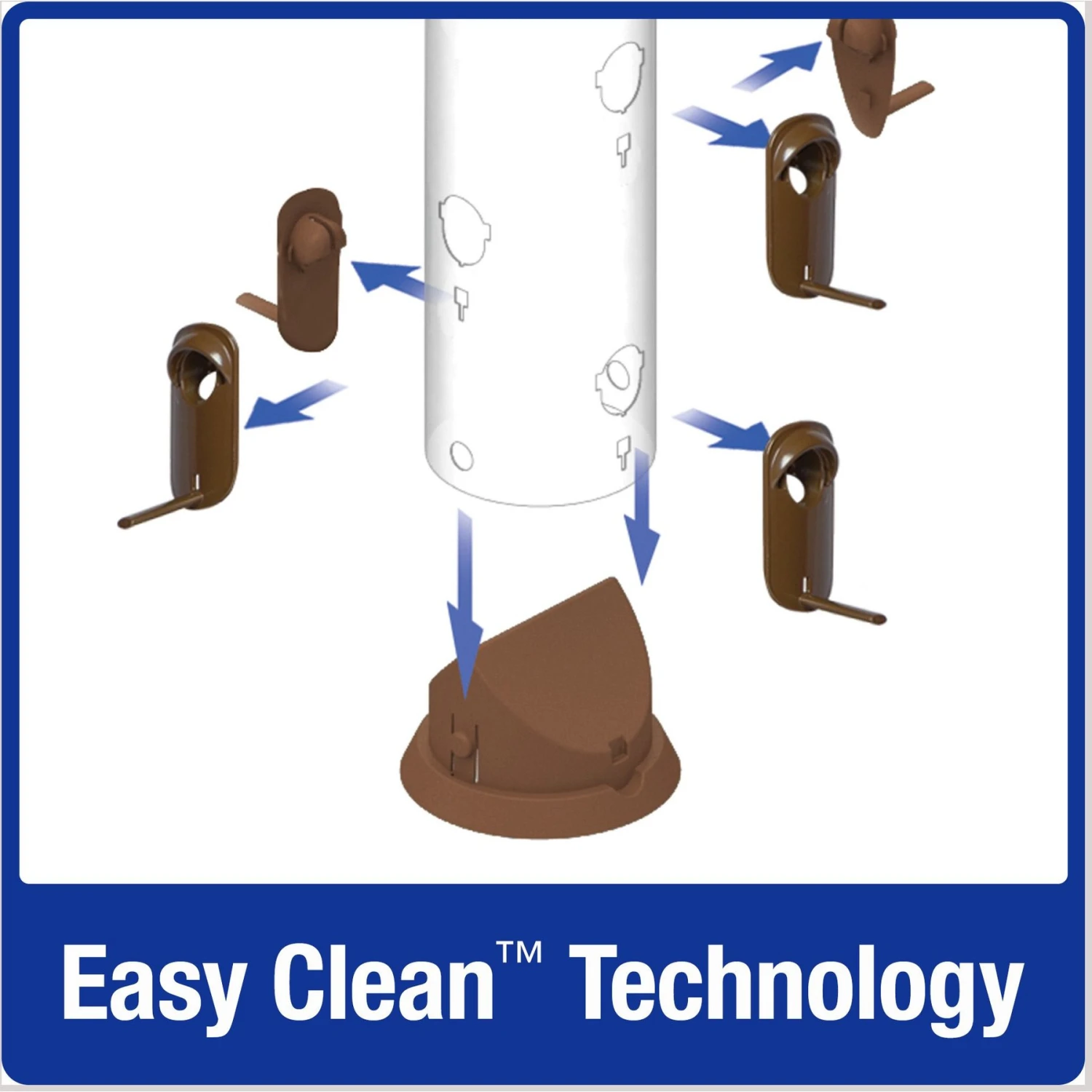 - A patented baffle system separates seed into individual chambers and helps keep seed available at all levels for maximum bird viewing.