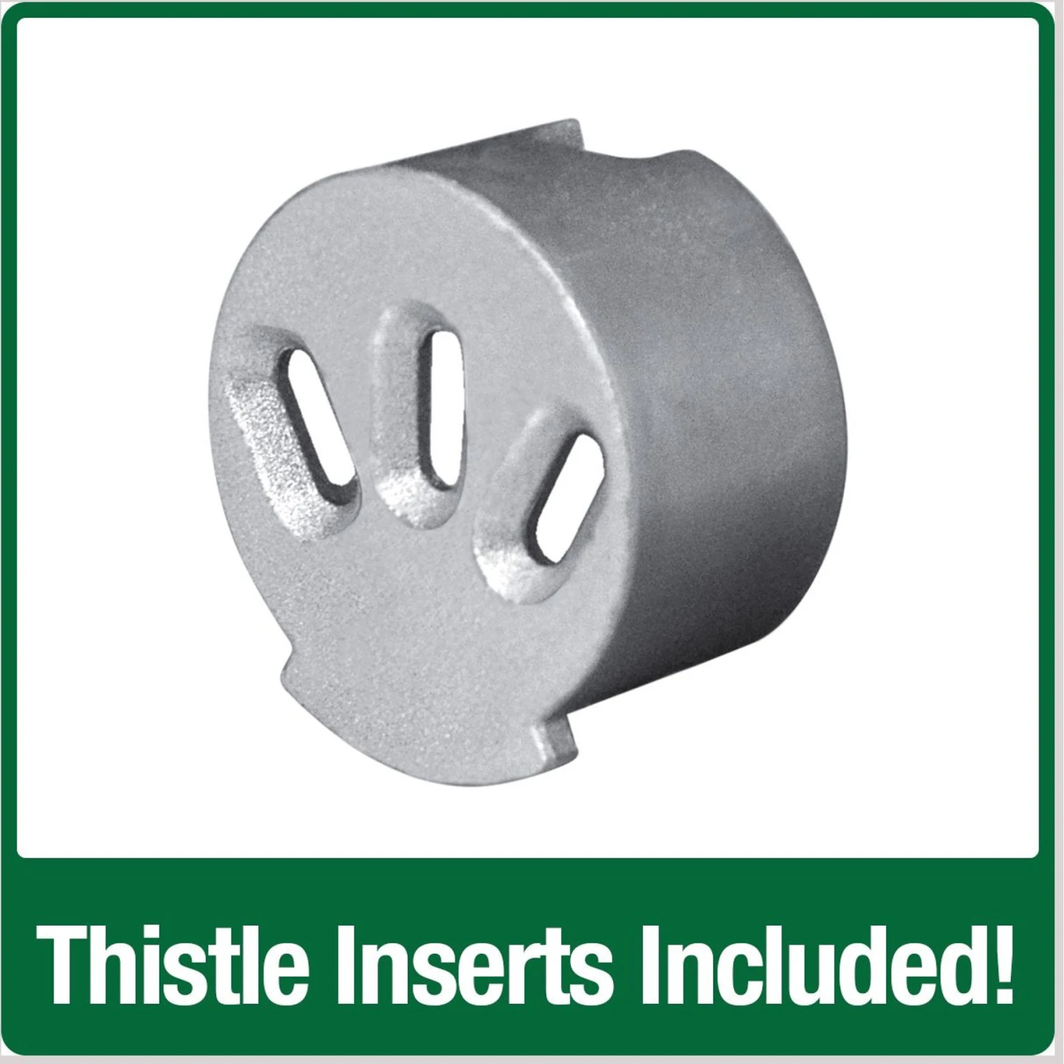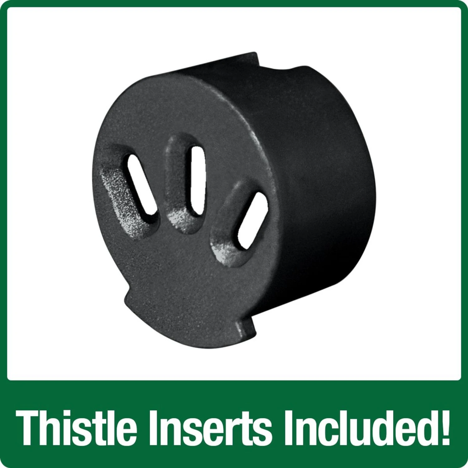 - Two-in-one design allows you to feed two varieties of seed (sold separately) at once—thistle inserts included!