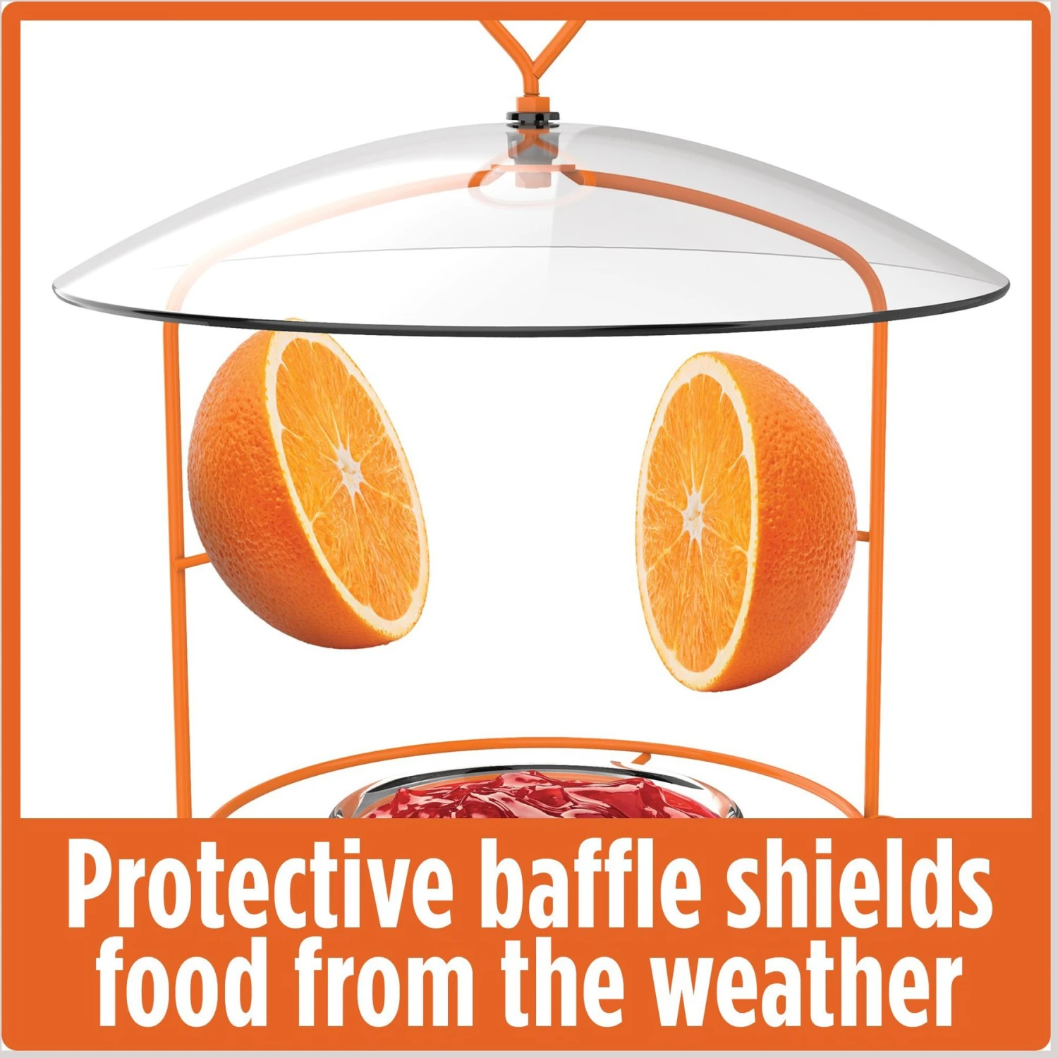 - Protective baffle helps to protect the feeder from rain and debris to keep food fresh.