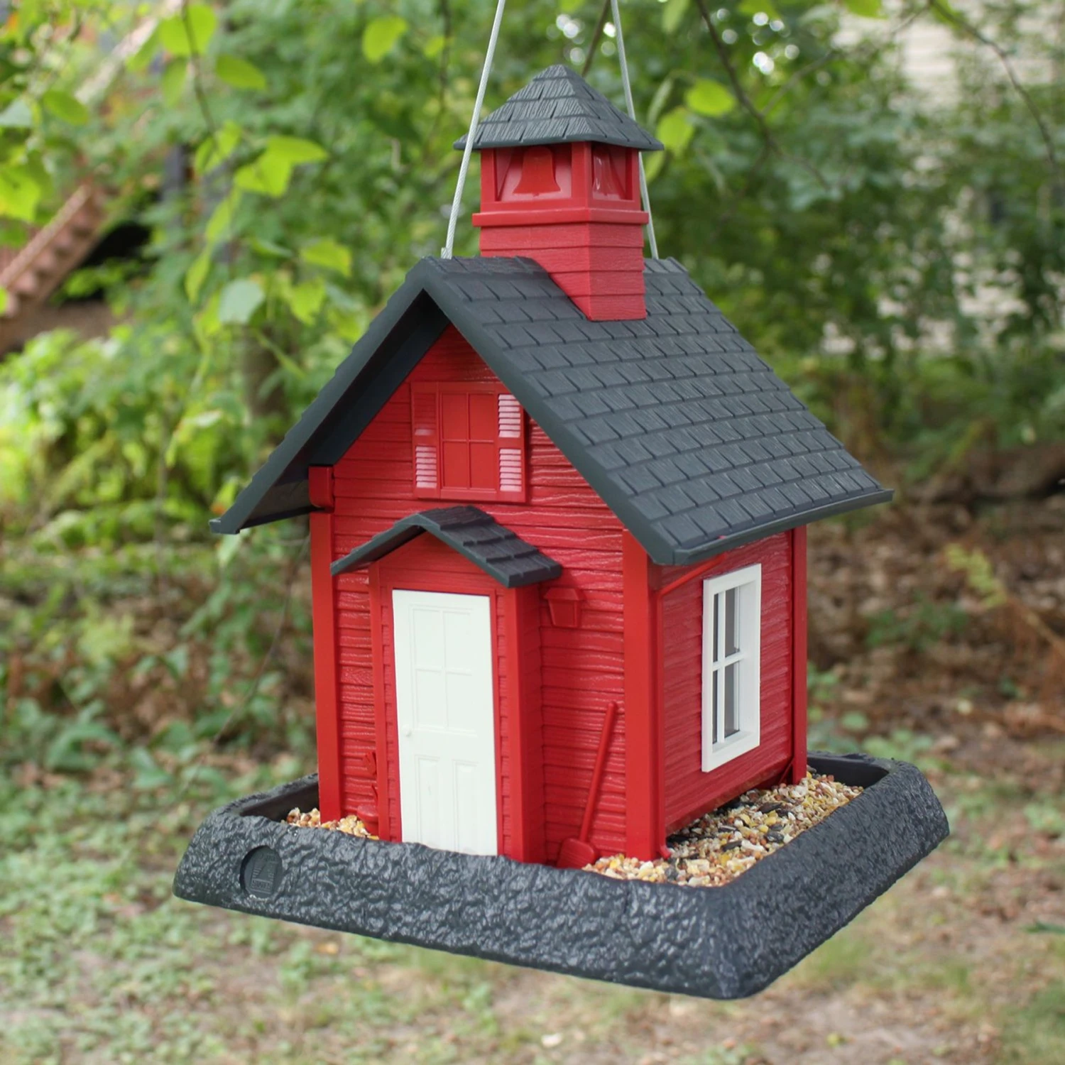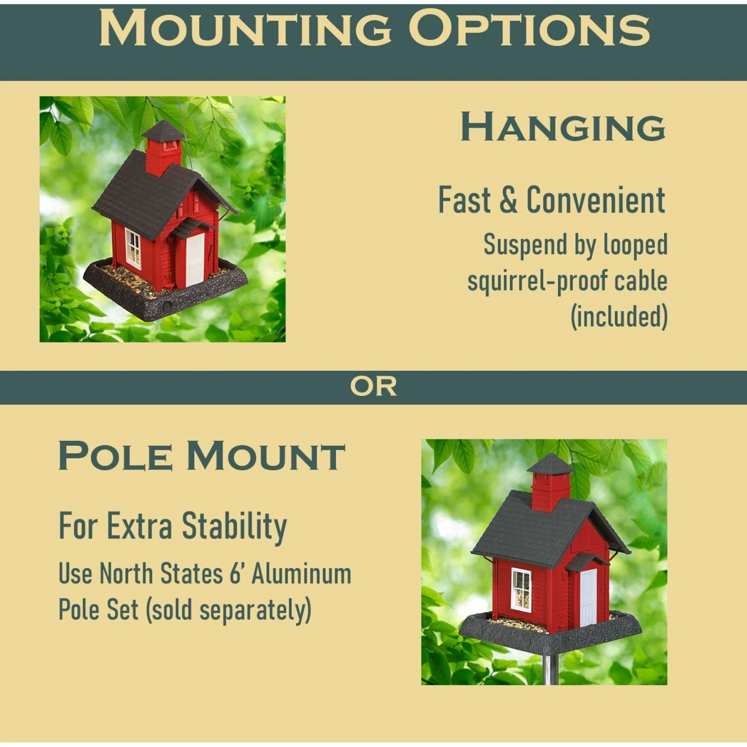 - Bird feeding station can be hung or pole mounted. Comes with a squirrel-proof cable for hanging.