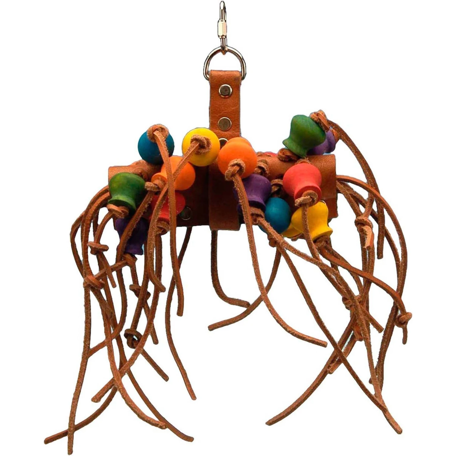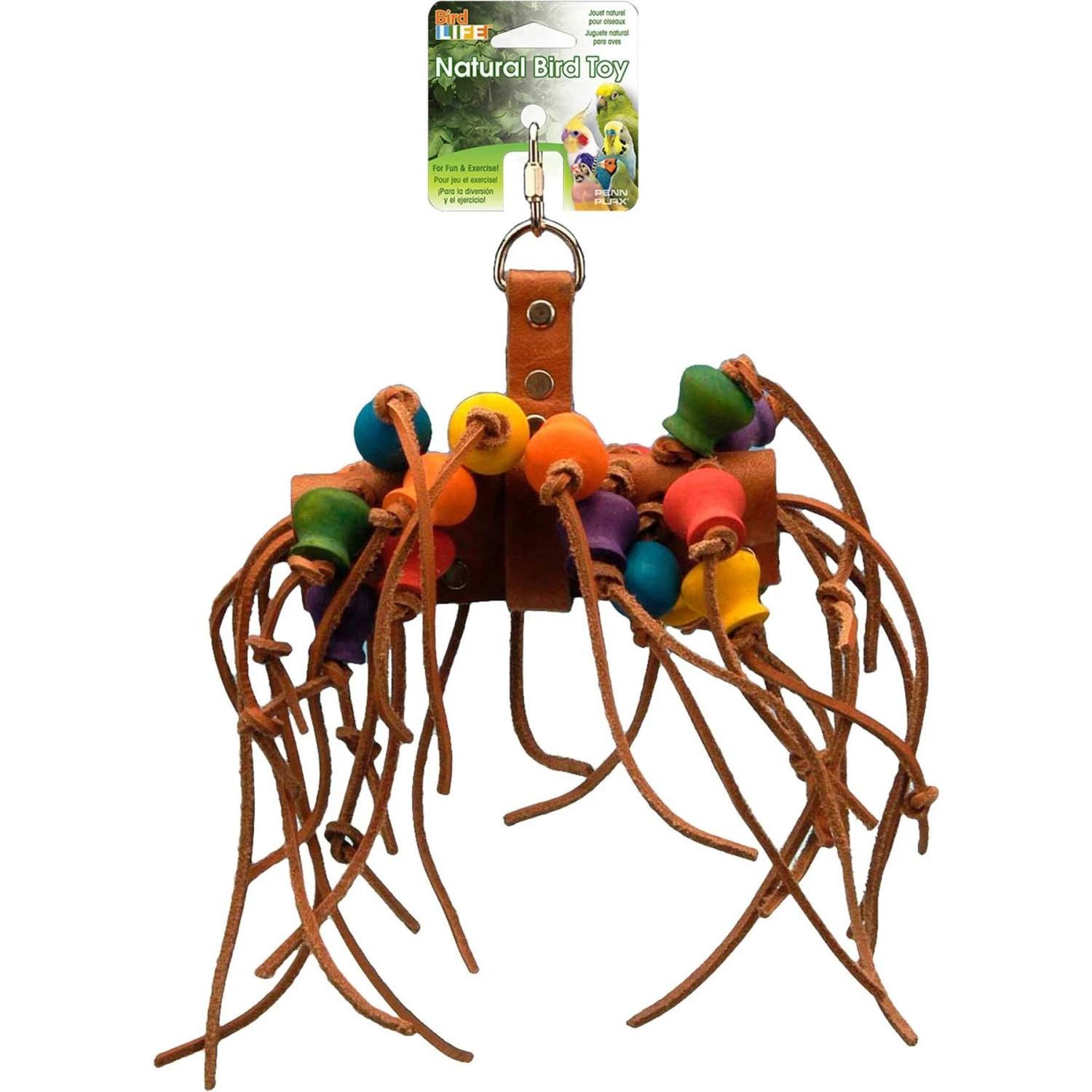 - Colorful rope and wooden beads are designed to entice your feathered pal to play.