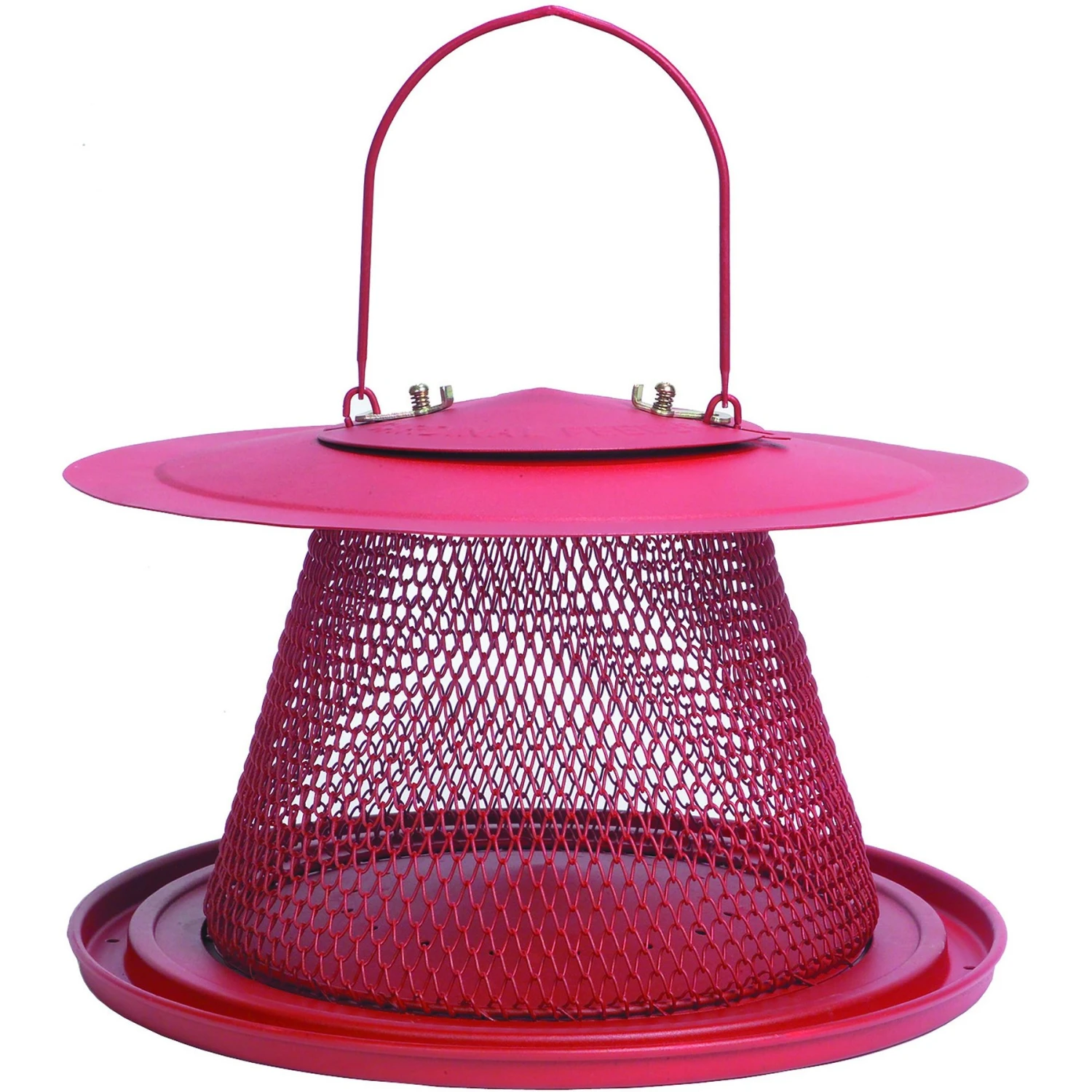 - Features a charming red color and provides a large feeding area for a variety of clinging and perching birds