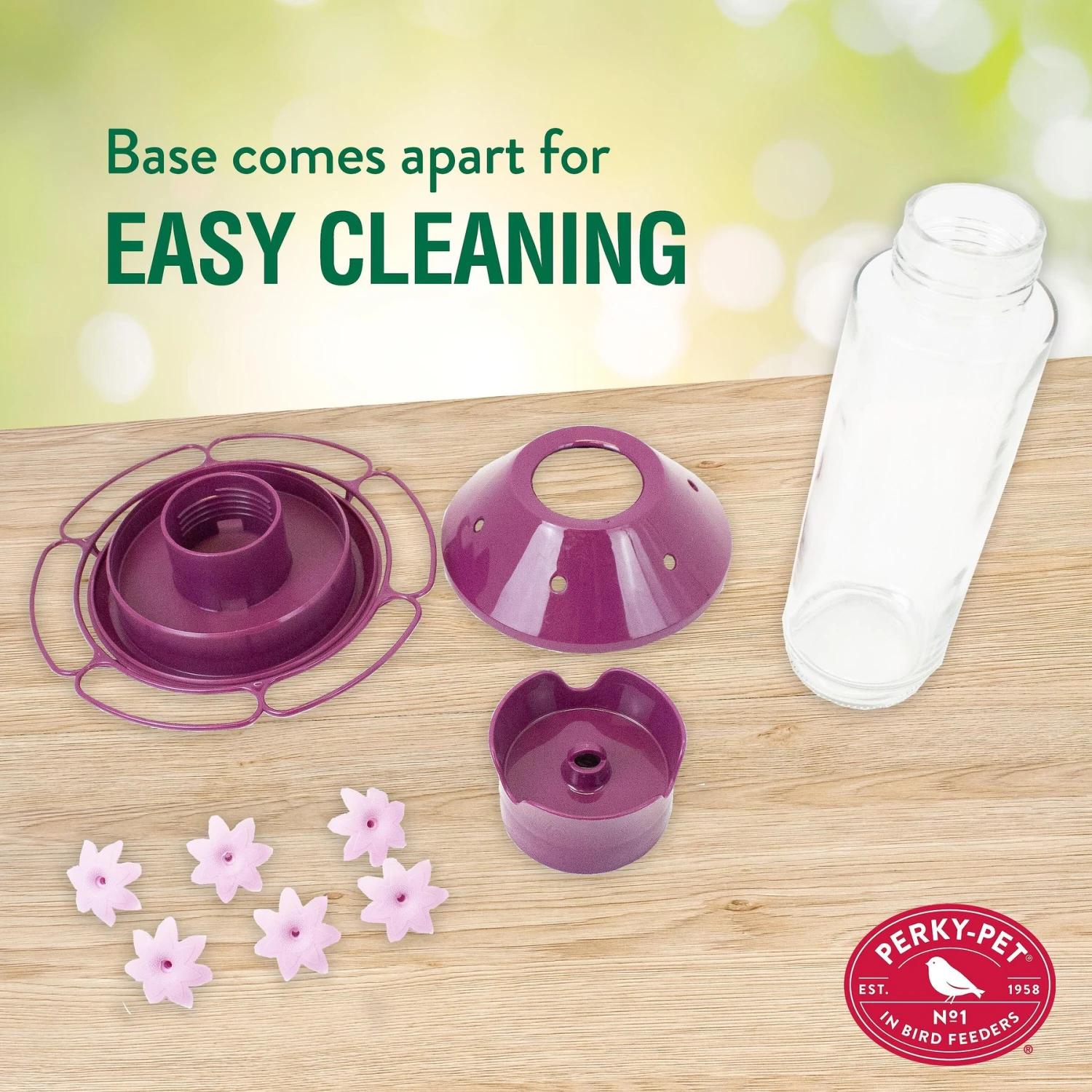 - Petunia-like ports wrap around the base and offer the birds a more natural place to feed.