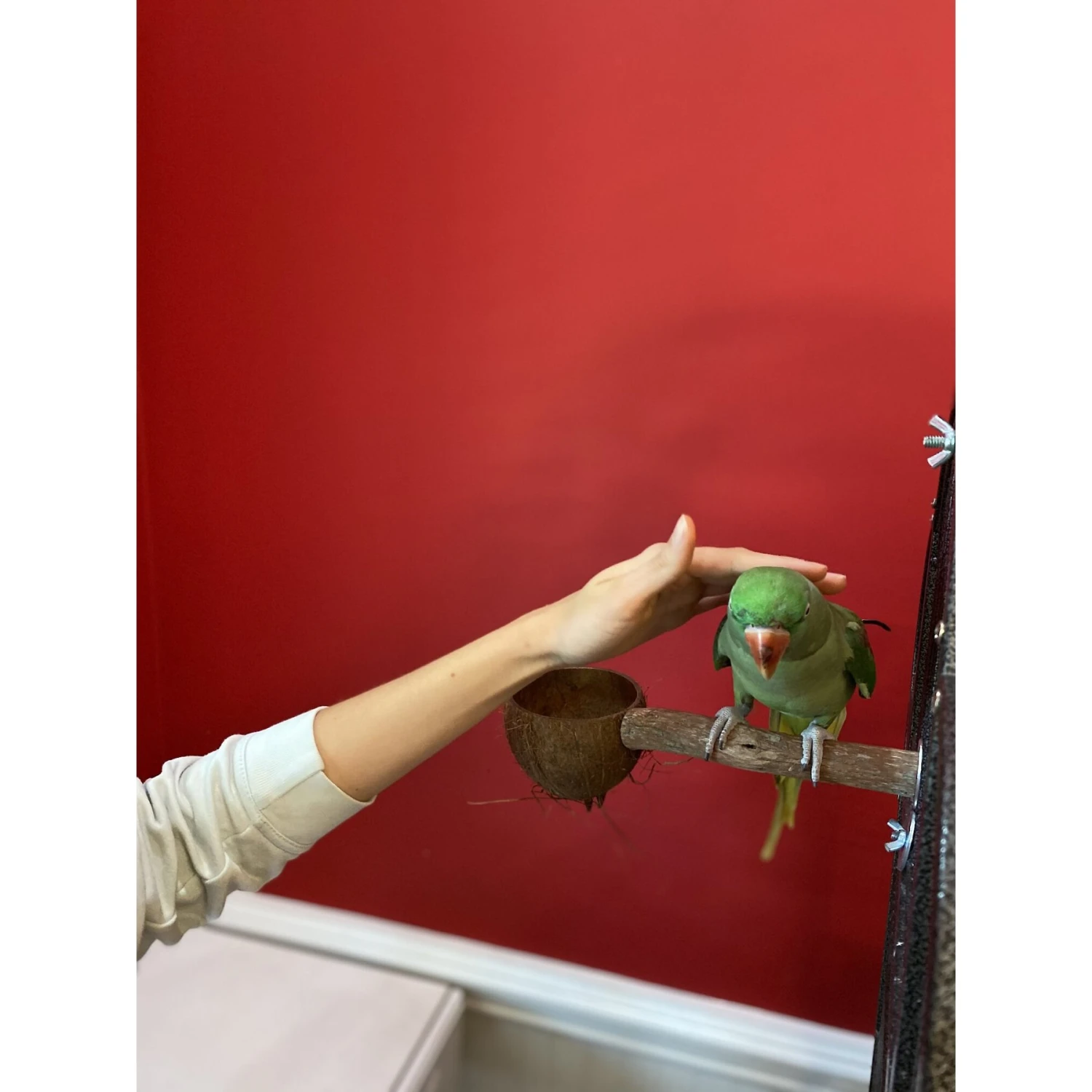 - Coconut shell adds a hint of tropical flair to your companion’s cage.
