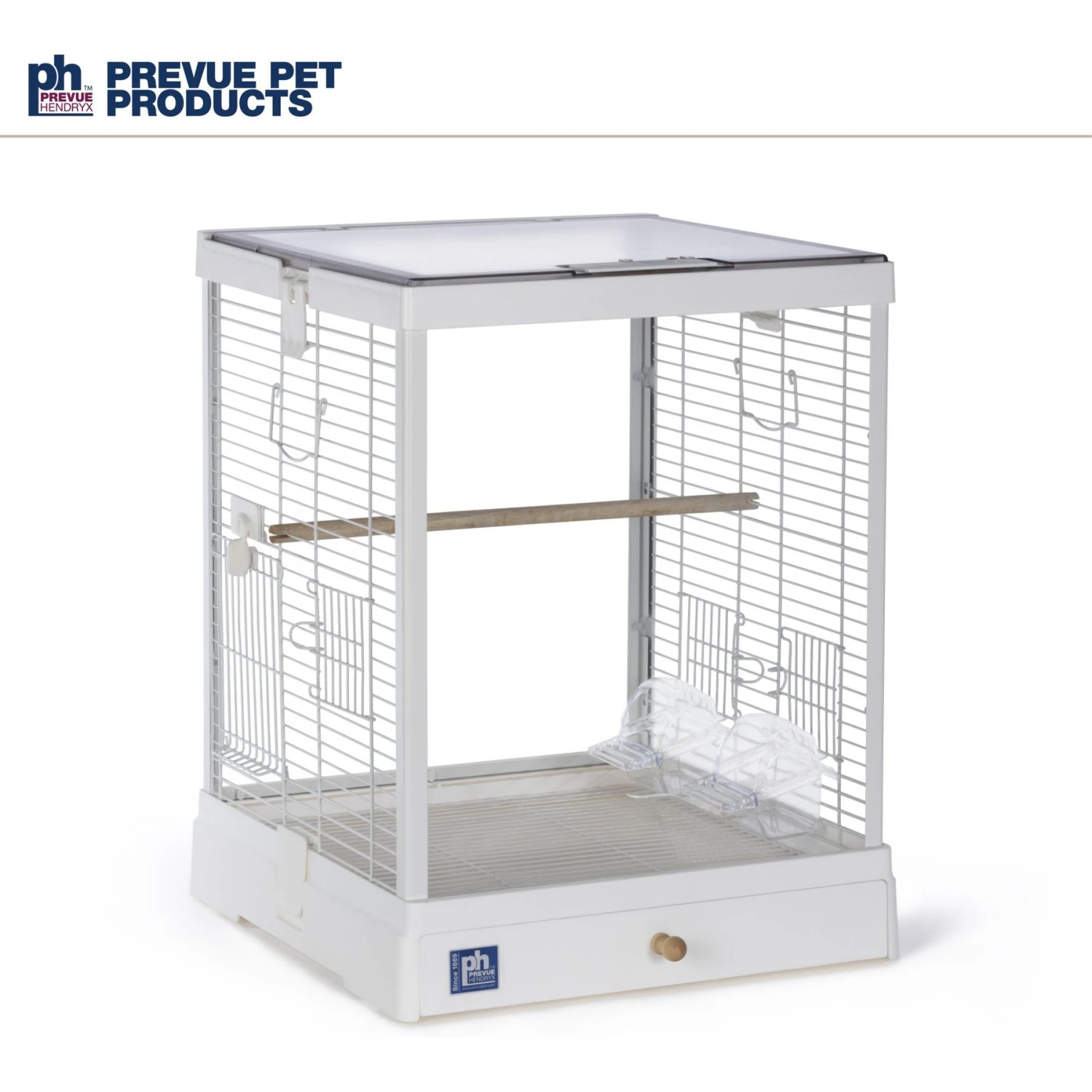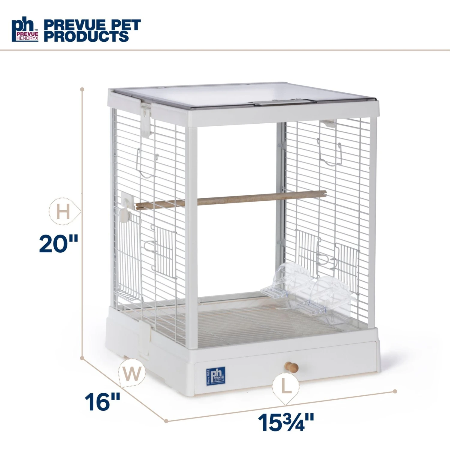 - Features a frosted-acrylic roof that can open fully for easy access or prop it open to let your flighty friends come and go as they please!