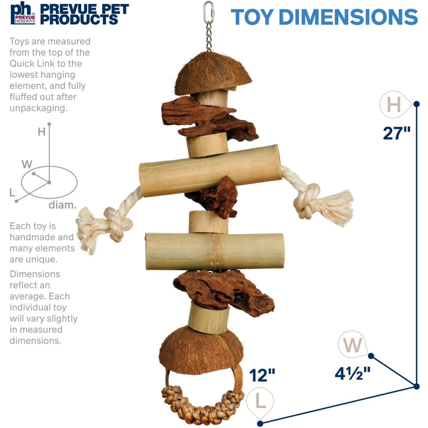- Created with coconut fibers, your bird will love to preen and pluck.