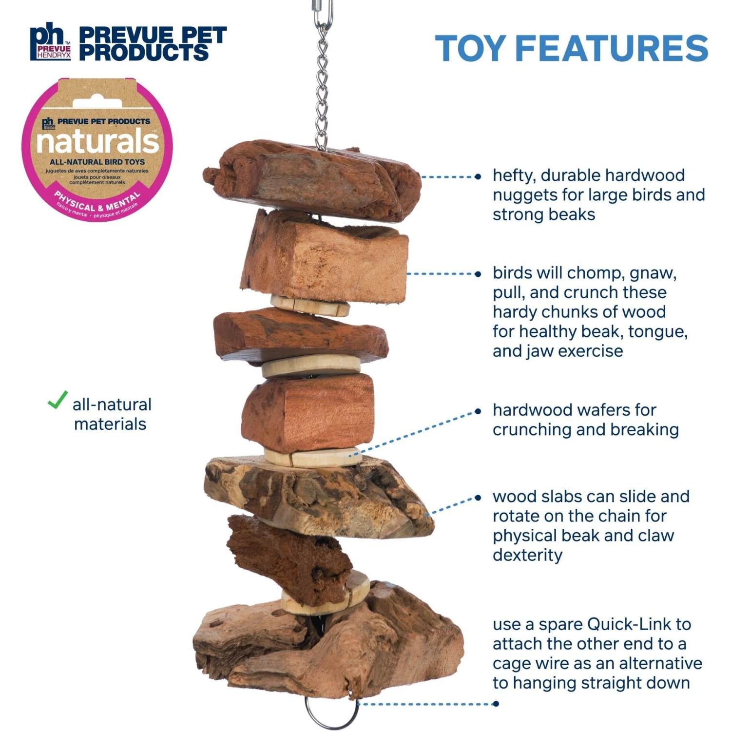 - Provides durable elements for your large and extra-large bird with a strong beak.