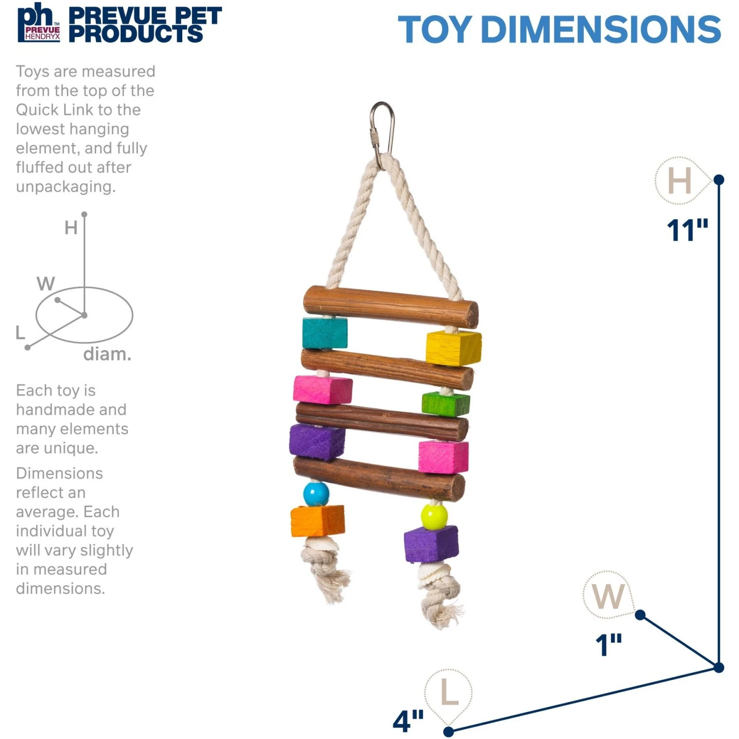 - Created with colorful hardwood blocks for chewing and spinning.