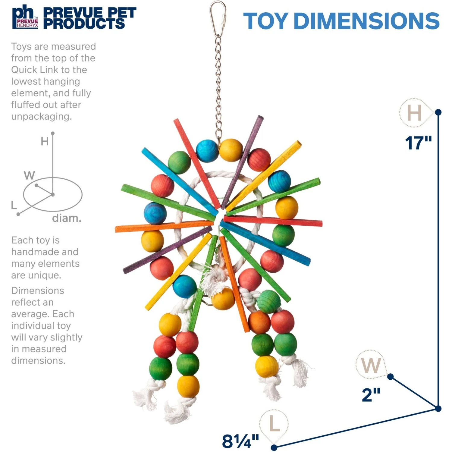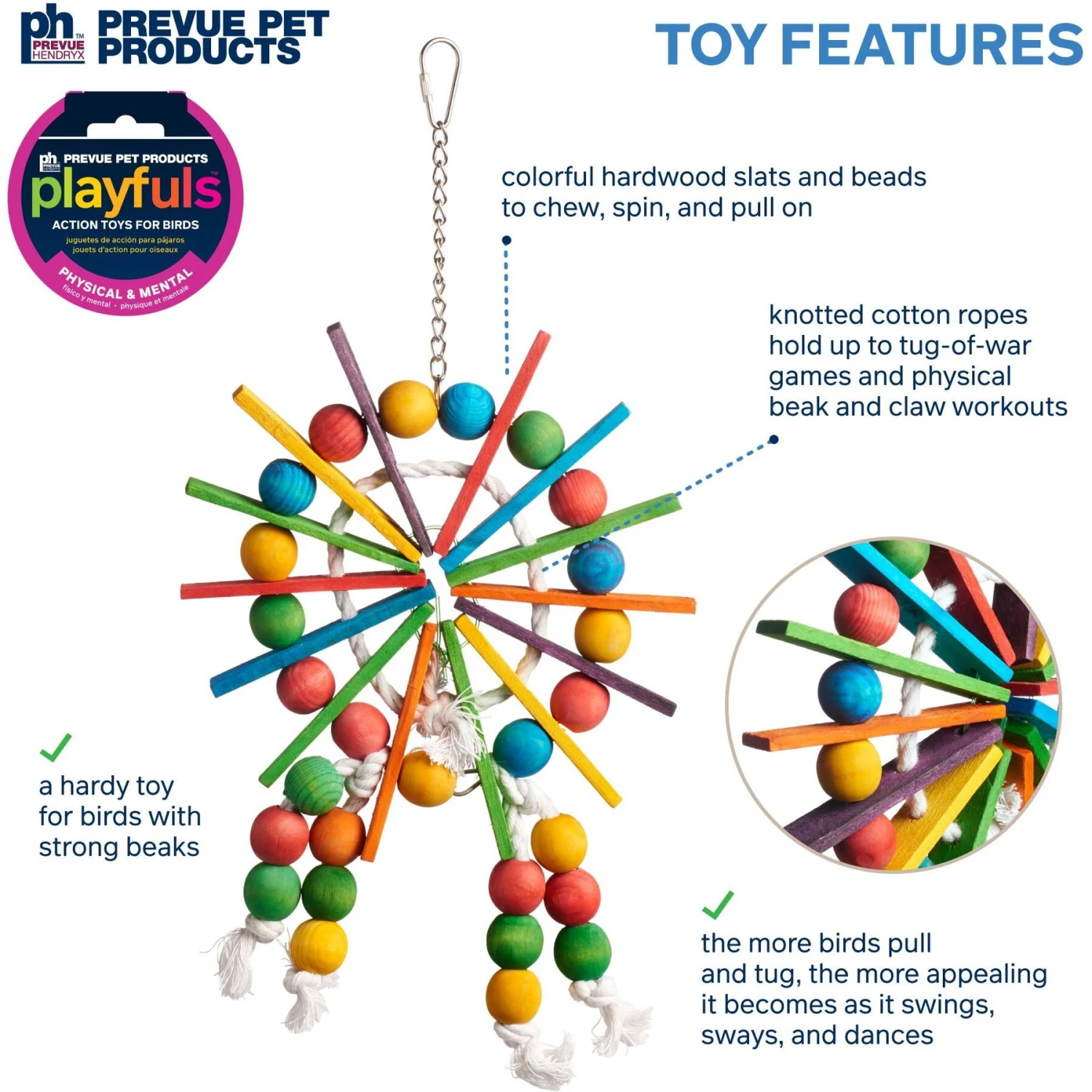 - Features colorful hardwood slats and beads to chew, spin and pull.