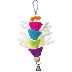 - Features bird-safe plastic discs and beads for beak and claw play.