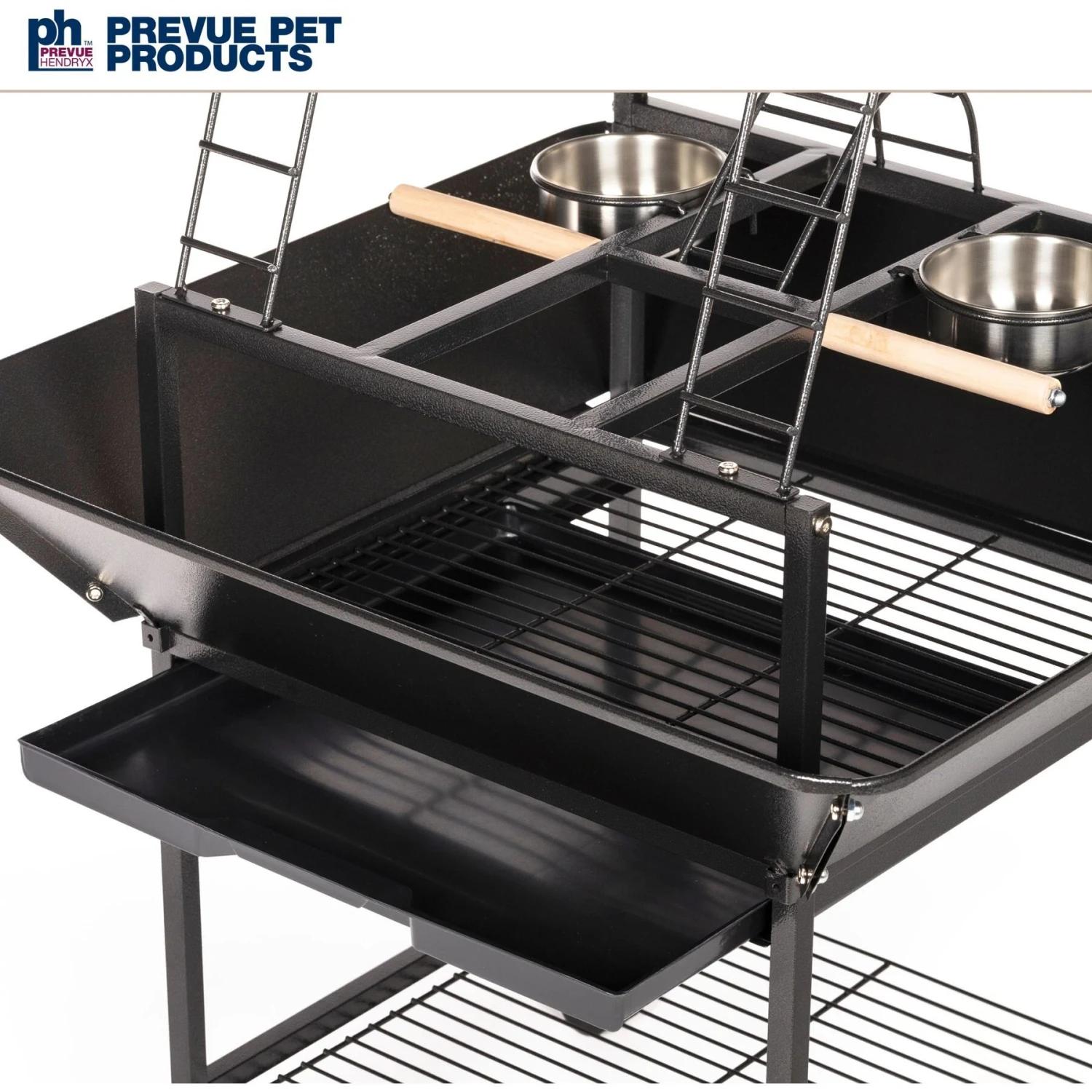 - With multiple activity areas including three ladders, perches and a swing for plenty of space for your parrot to climb and move around
