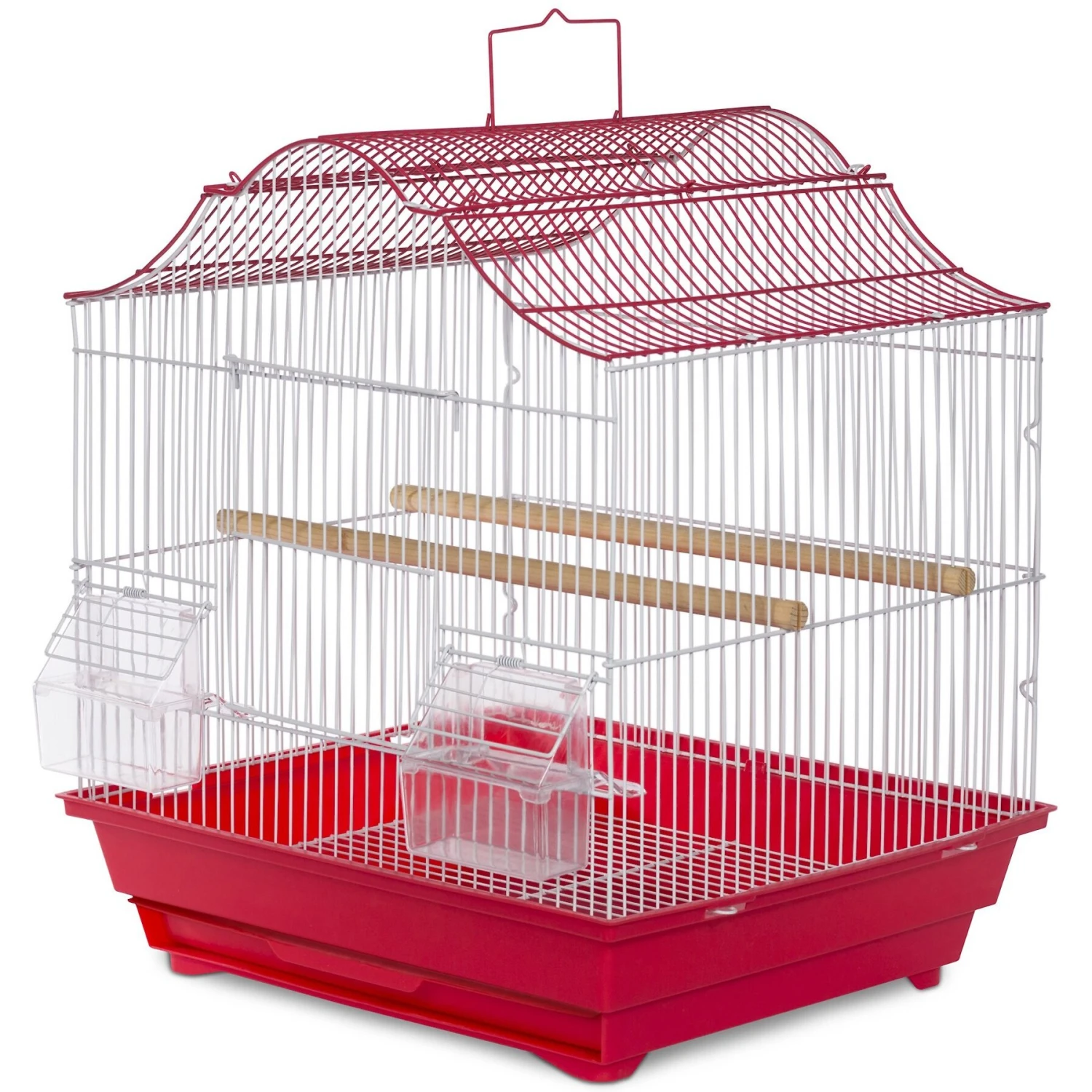 - Includes 2 plastic cups and 2 wood perches.