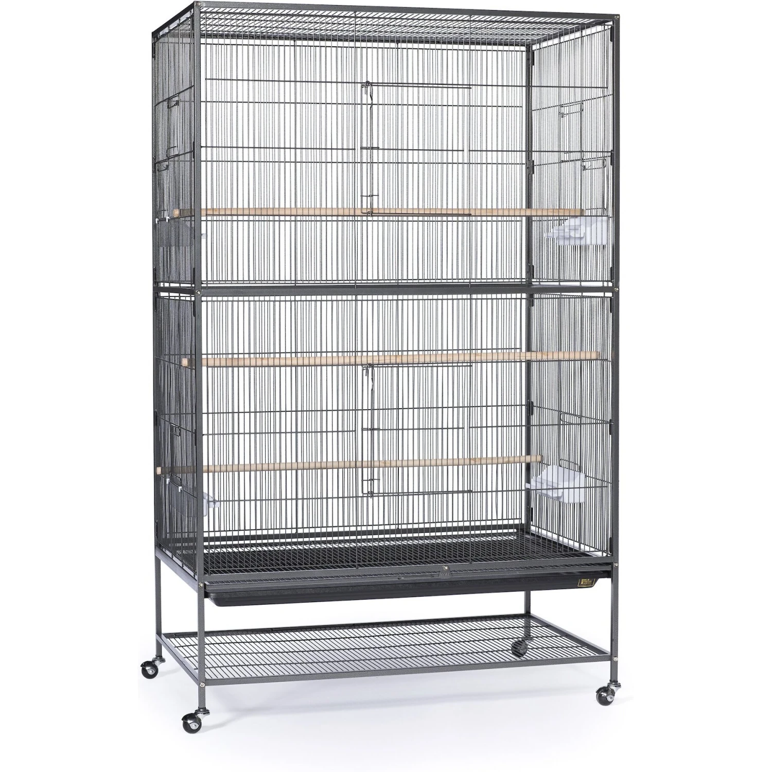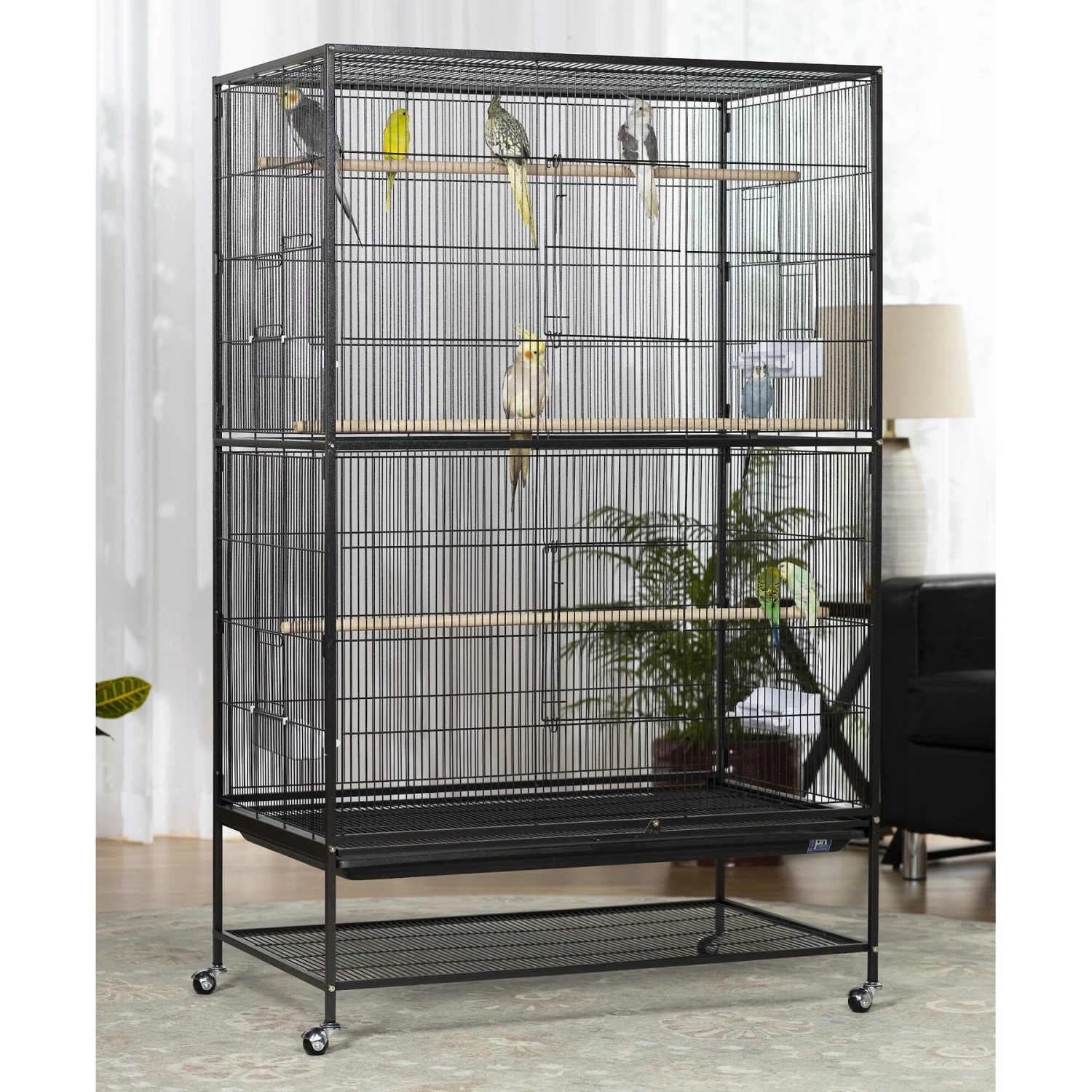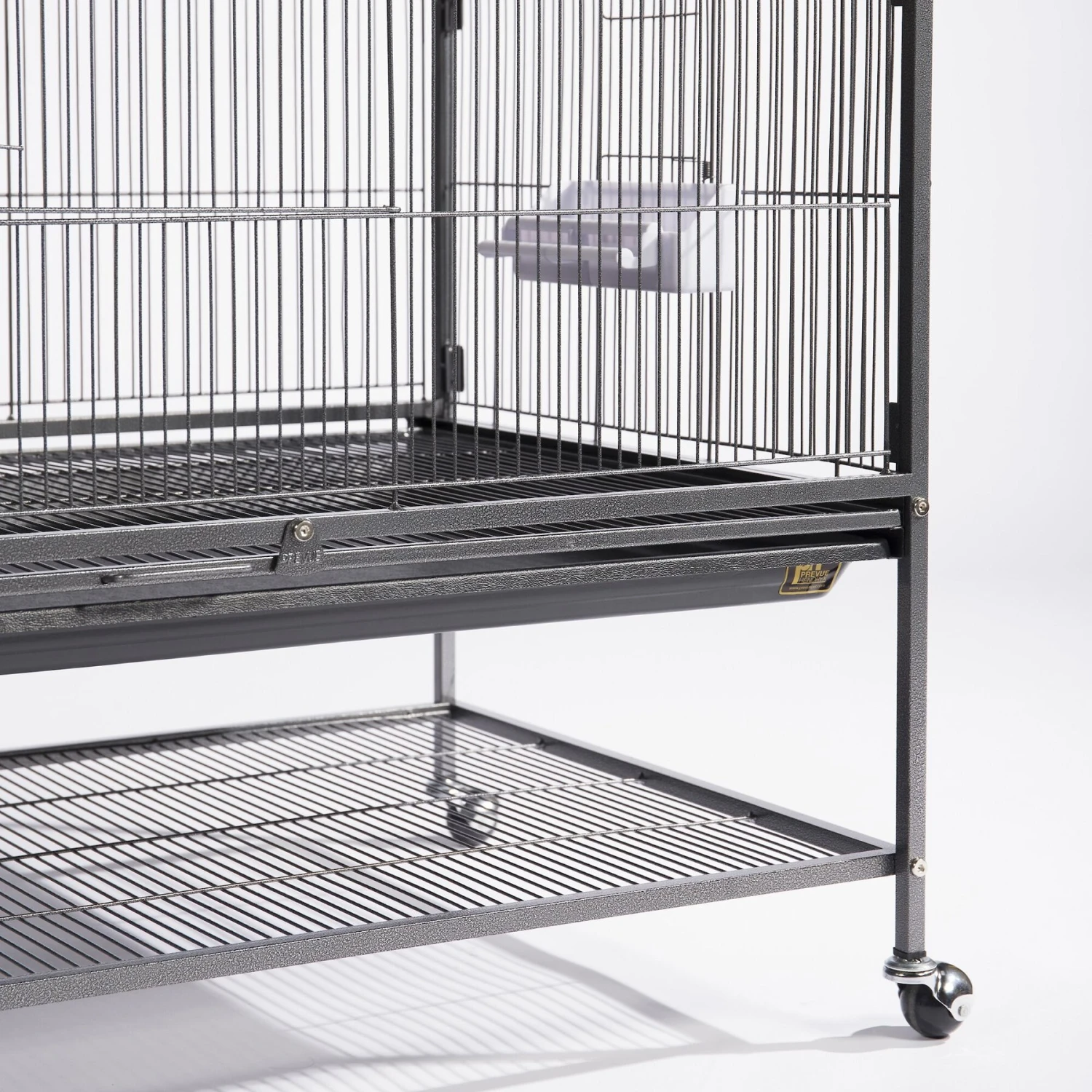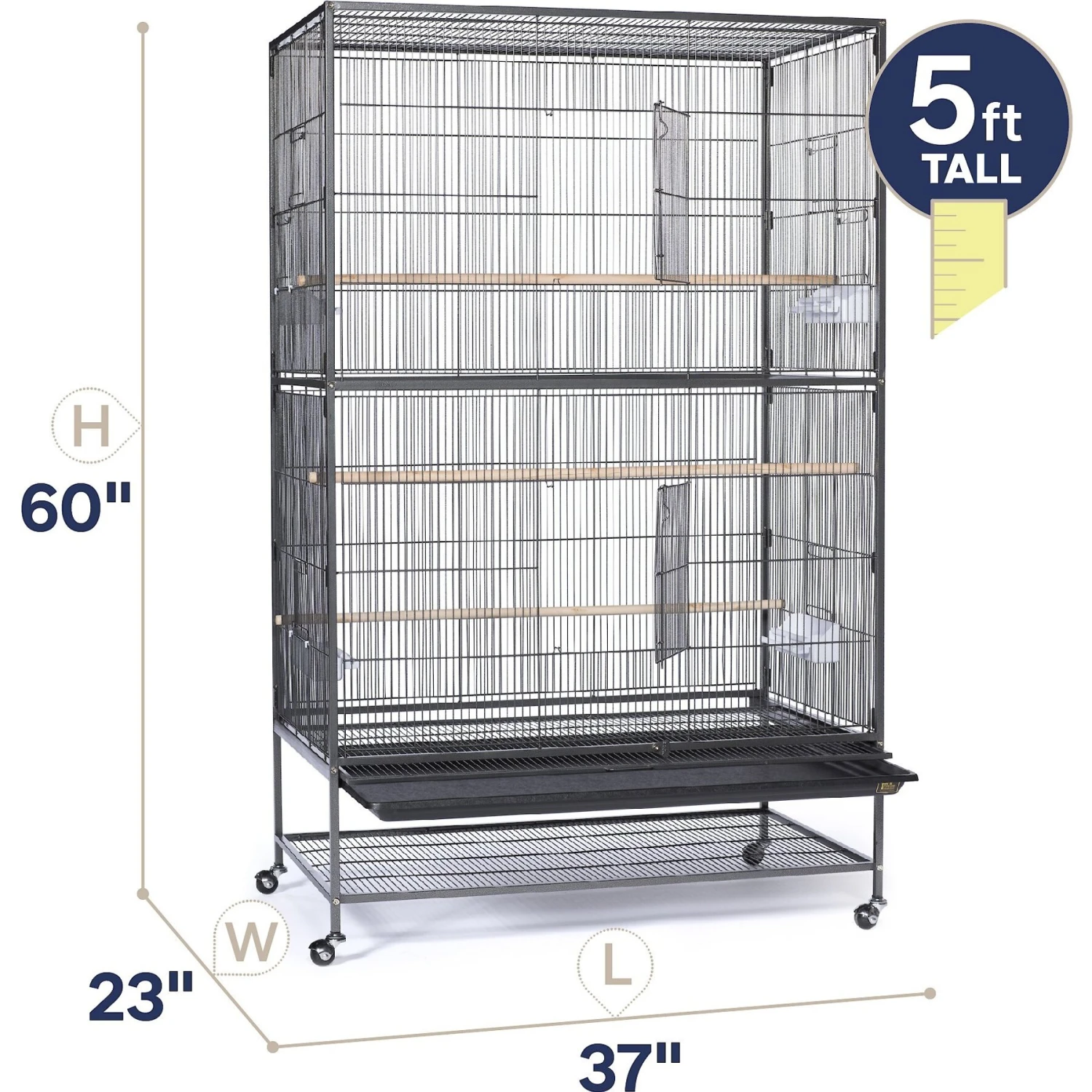 - Large, roomy powder-coated steel construction flight cage suitable for multiple small birds.