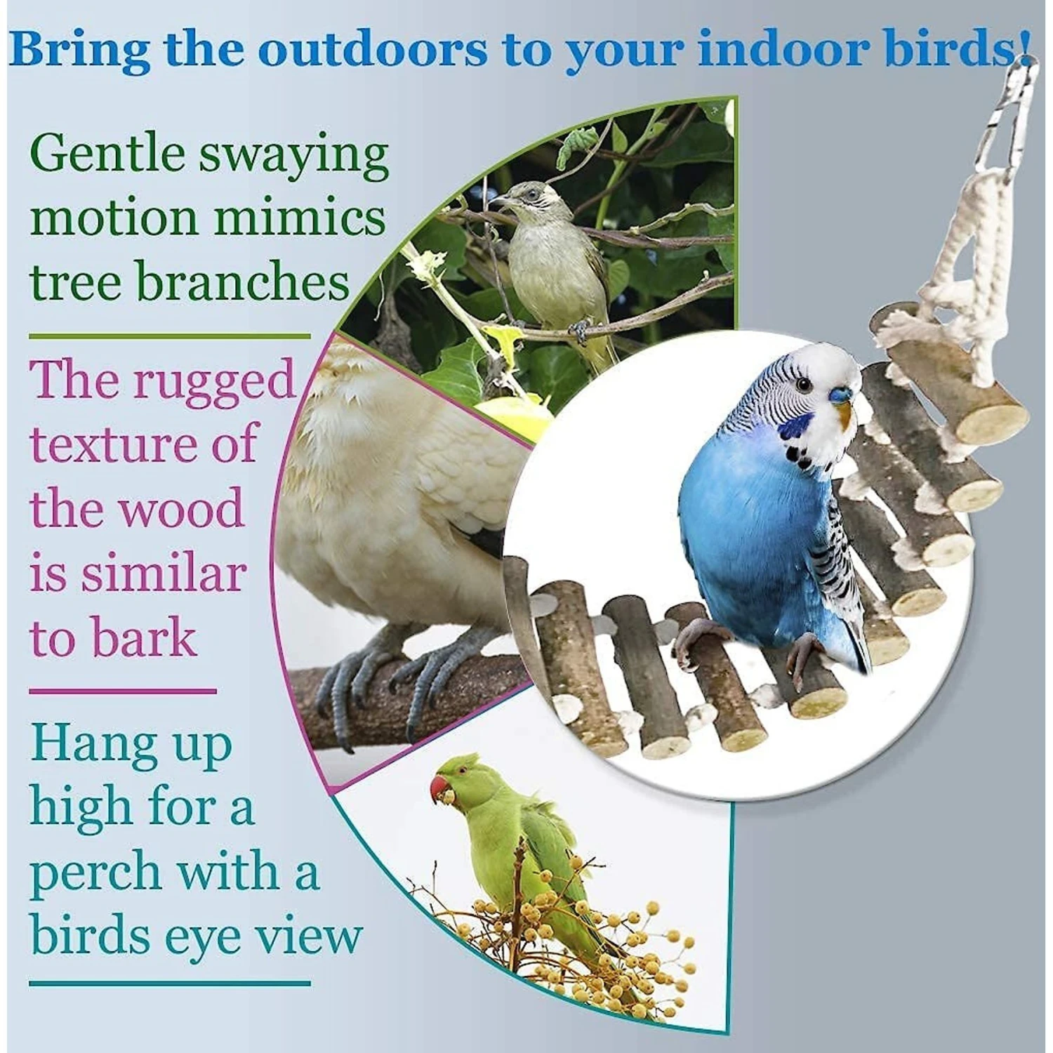 - Hanging rope ladder encourages your bird buddy to climb, play and hop from rung to rung, which develops balance and maintains his foot health.