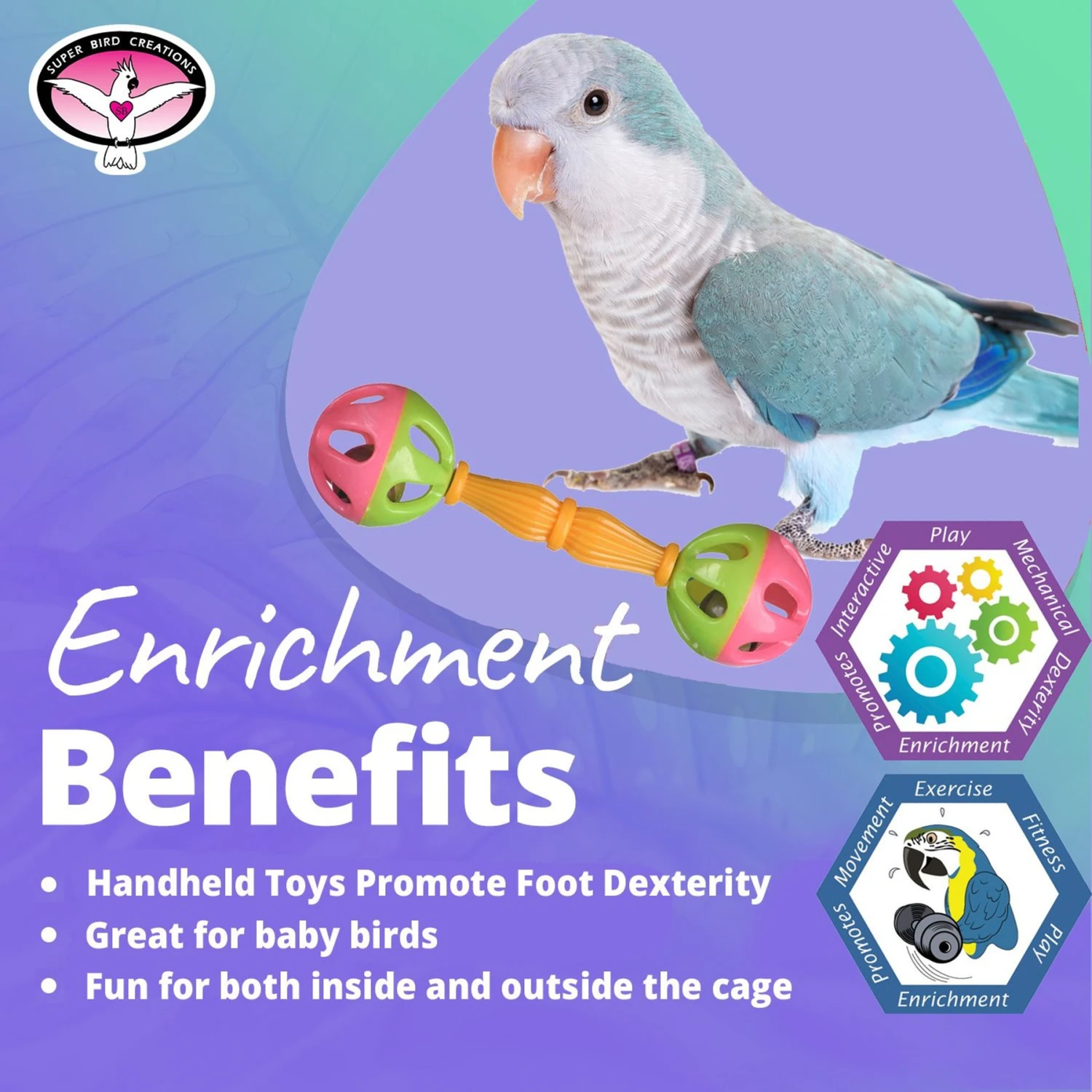 - Foot toys promote good dexterity and offer plenty of fun inside or outside your bird’s cage.